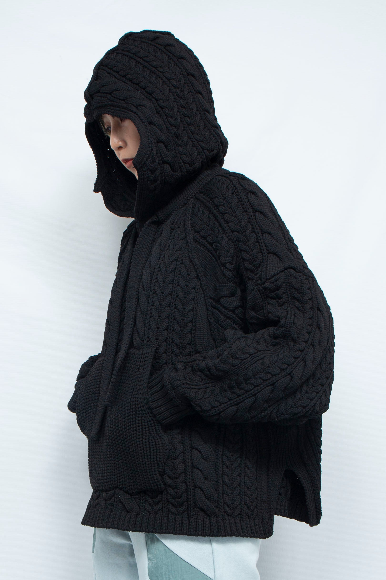 24AWシーズンの象徴的なカラーリングのビッグシルエットのケーブルニットパーカー。