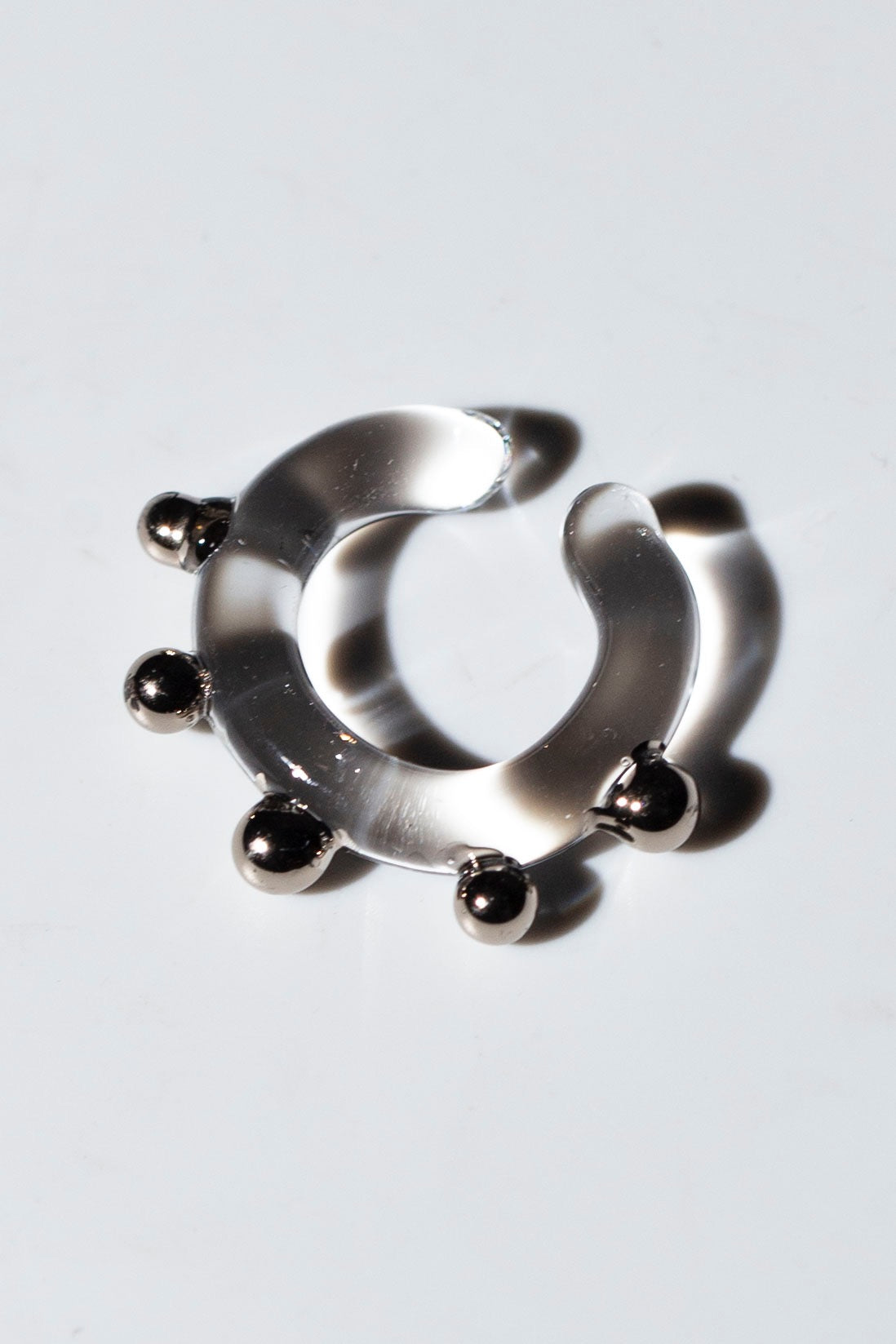 クリアなガラスをベースにゴールドを焼き付けた球が耳周りを囲むようなイヤカフ。