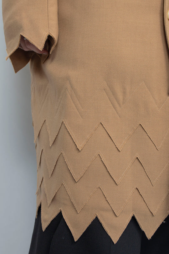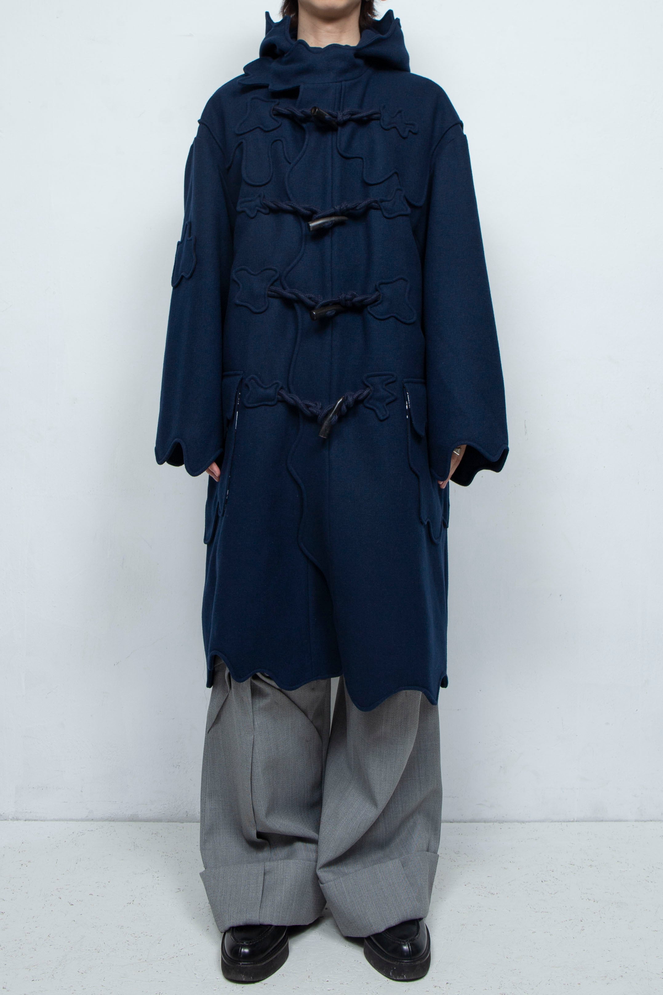 魚の鱗がインスピレーションのミドルコート。グラフィカルな鱗のモチーフを随所に配した大胆なデザインです。