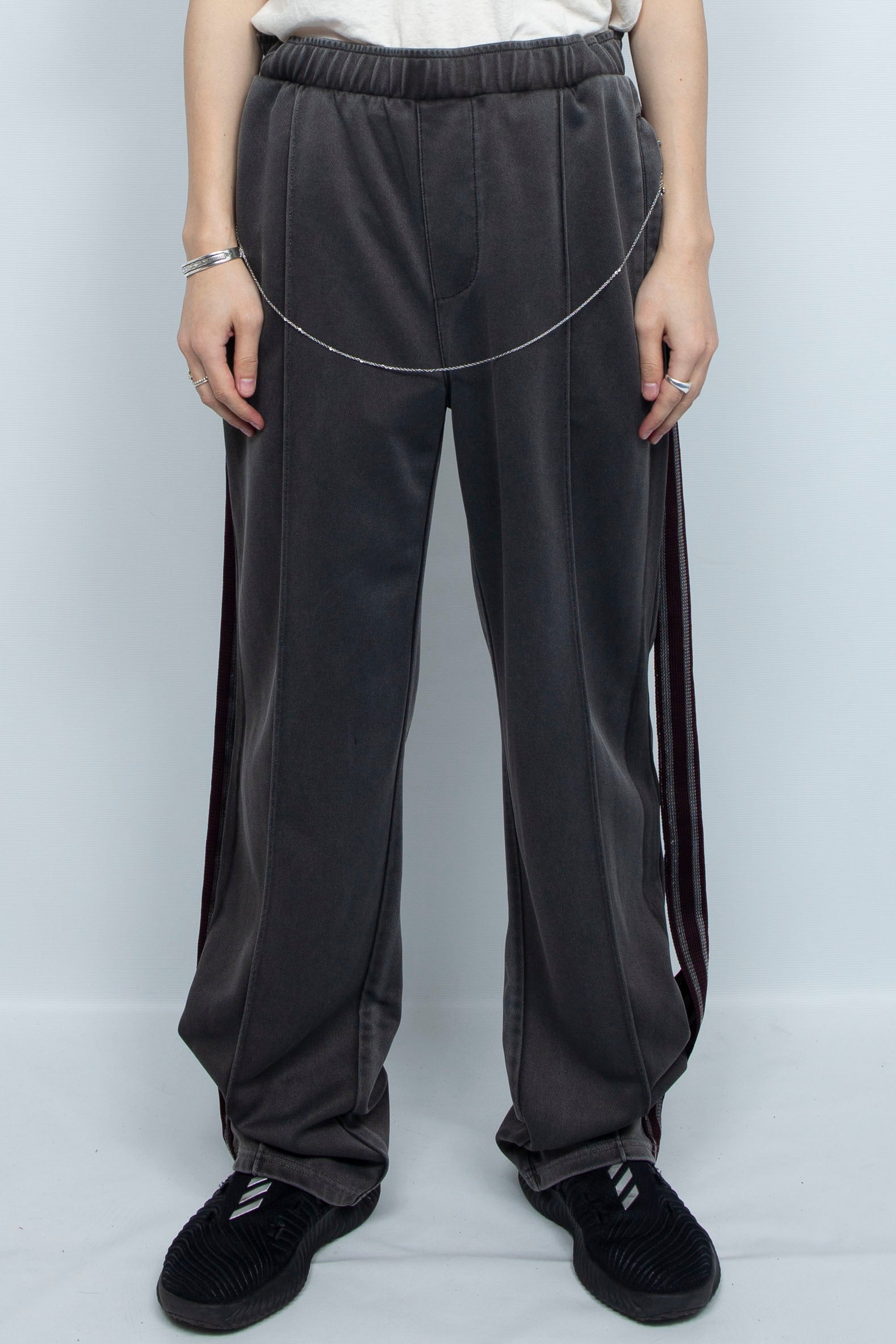 bitch. の刺繍入りスウェットパンツ。ウエストはゴムと紐仕様で、裾はゆったりしたリブ仕様。