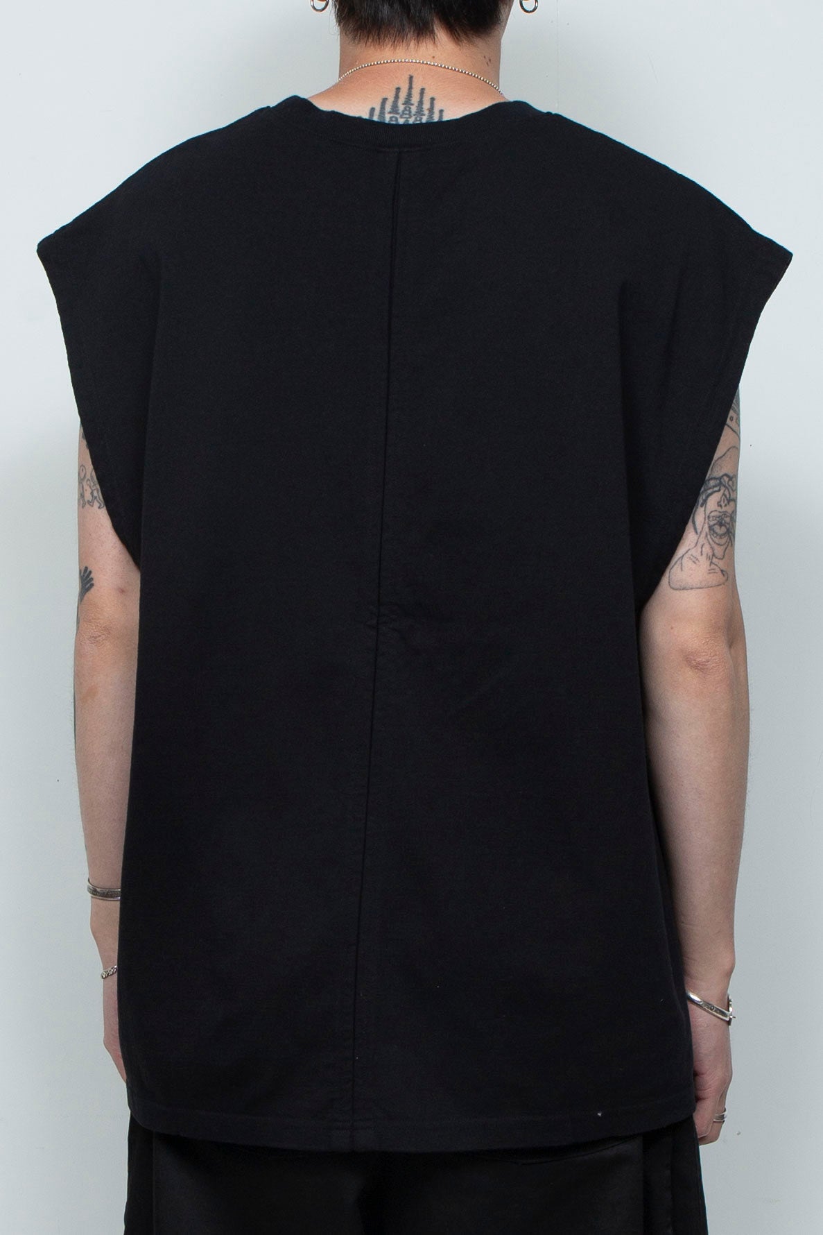 ワイドシルエットのタンクトップ。 熟成コットン原料を強い撚りで特殊紡績して編み上げたことによるヴィンテージ感のある面構えと独特のドライタッチを特徴とし、染色工程にて高温スチーム機で蒸かすことで素材に膨らみを持たせた天竺を使用したノースリーブです。