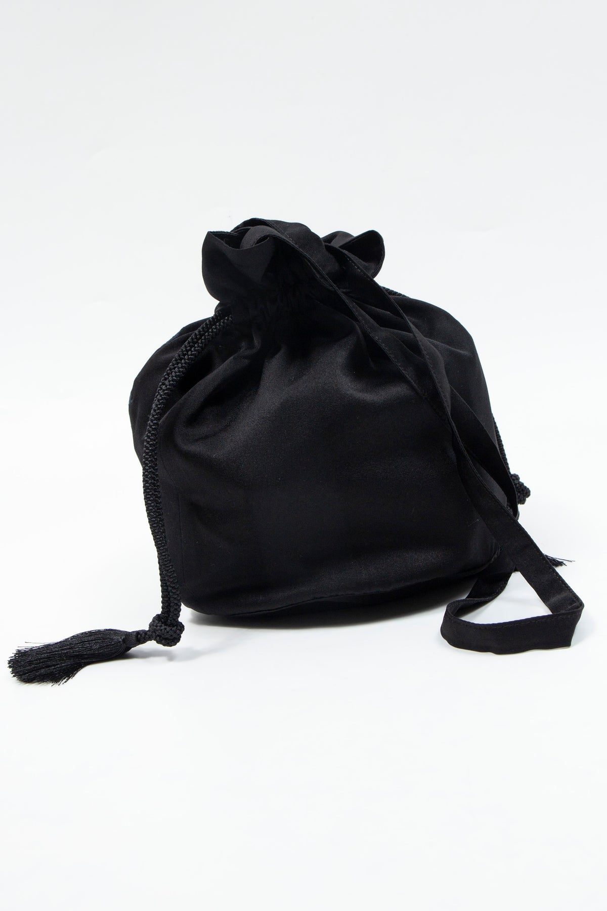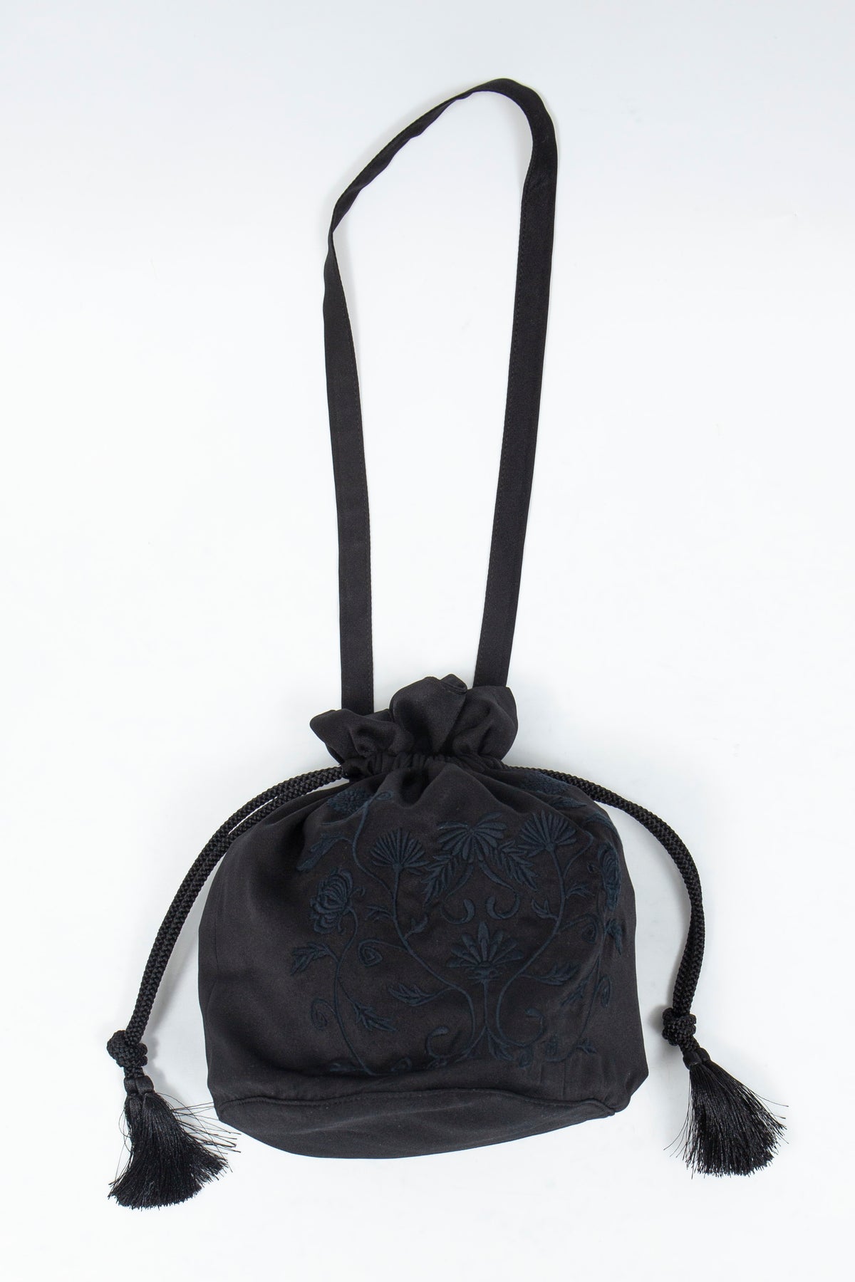 ritsuオリジナルのキルティング刺繍生地を使用したボヘミアンなドローストリングバッグ。