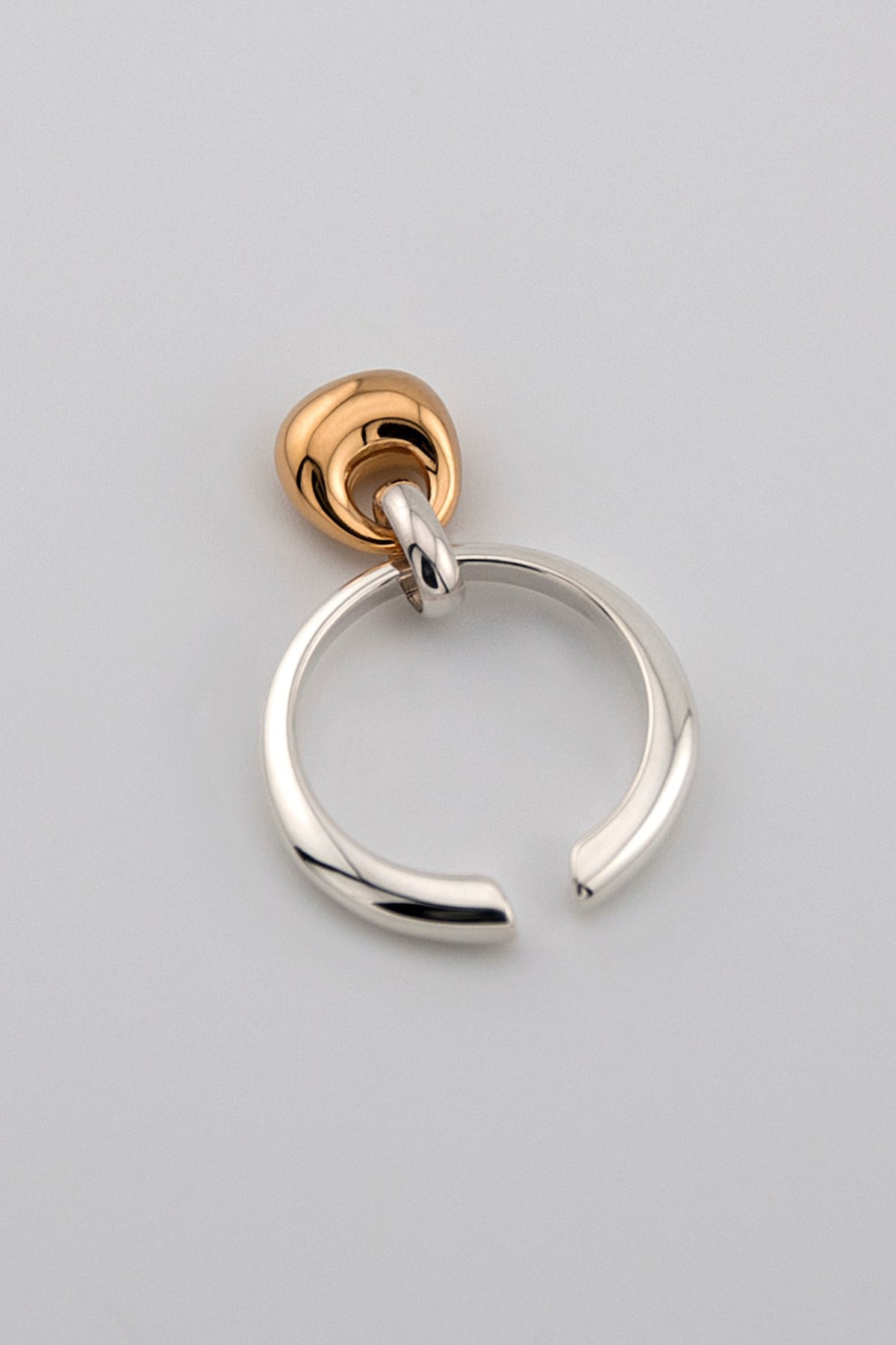 やや大ぶりのシルバーイヤカフに、ゴールドのチャームパーツを組み合わせた構造。