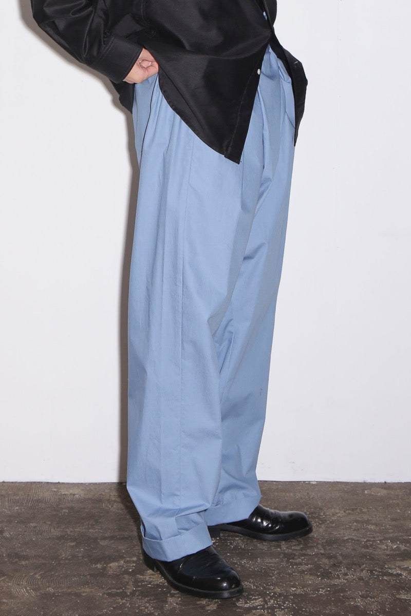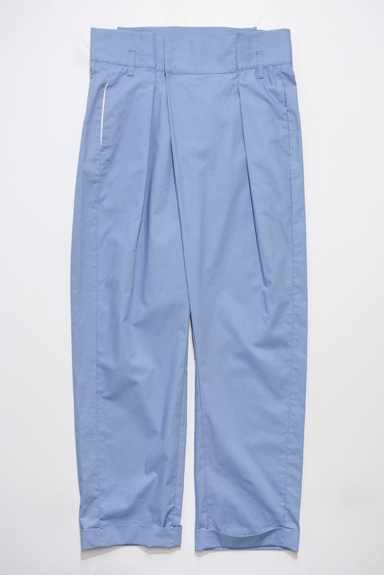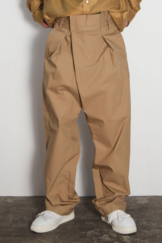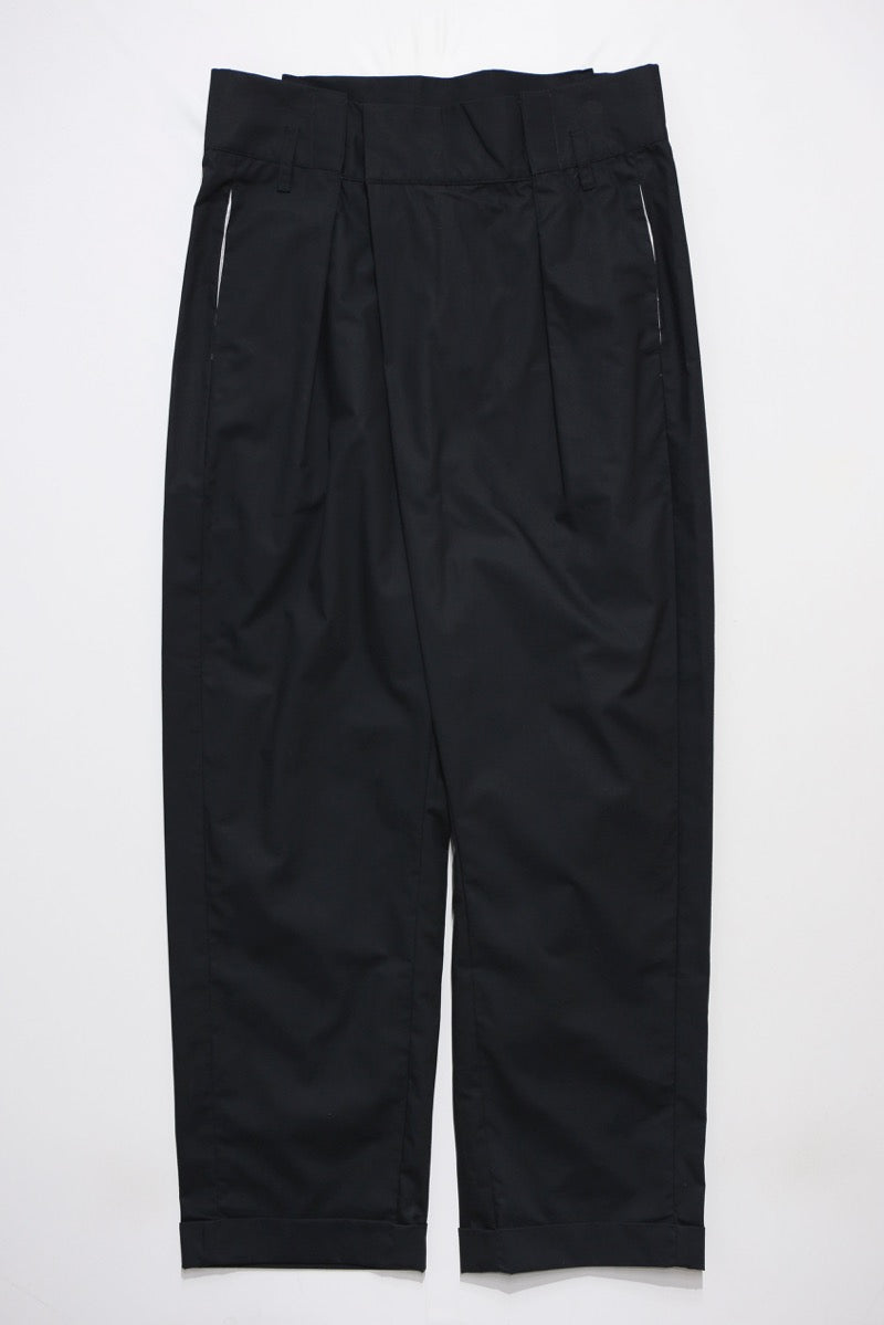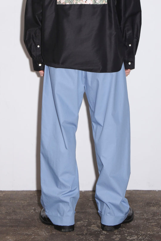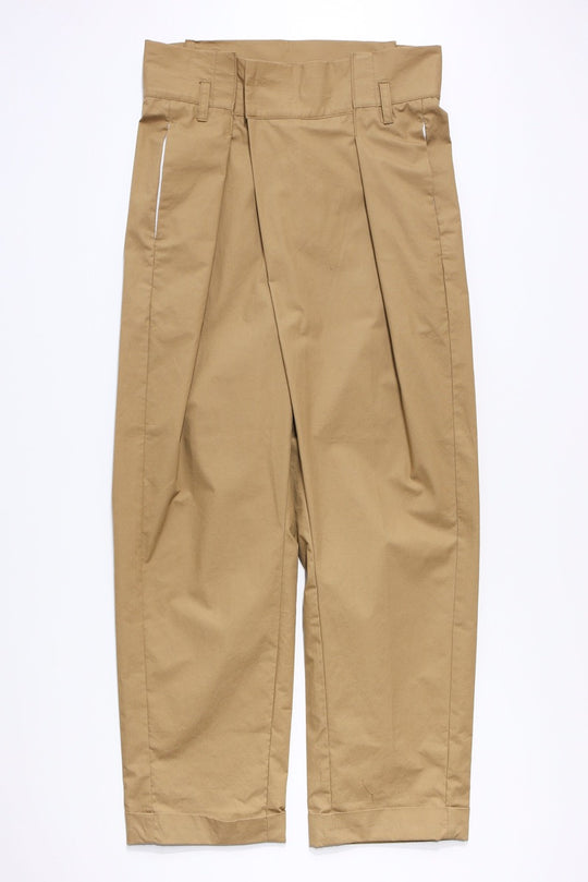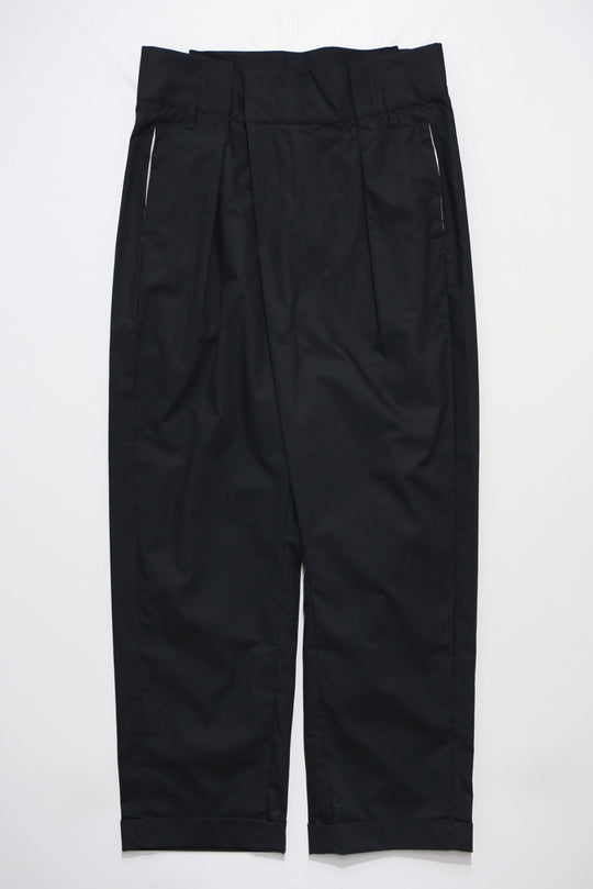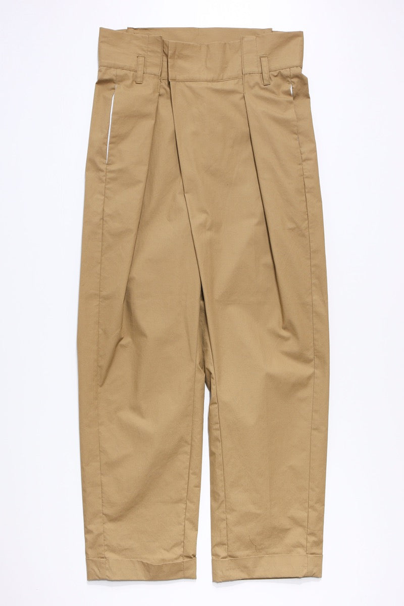 ウエストがダブル仕様になったラップパンツ。ワイドなシルエットで、裾はダブル仕様。