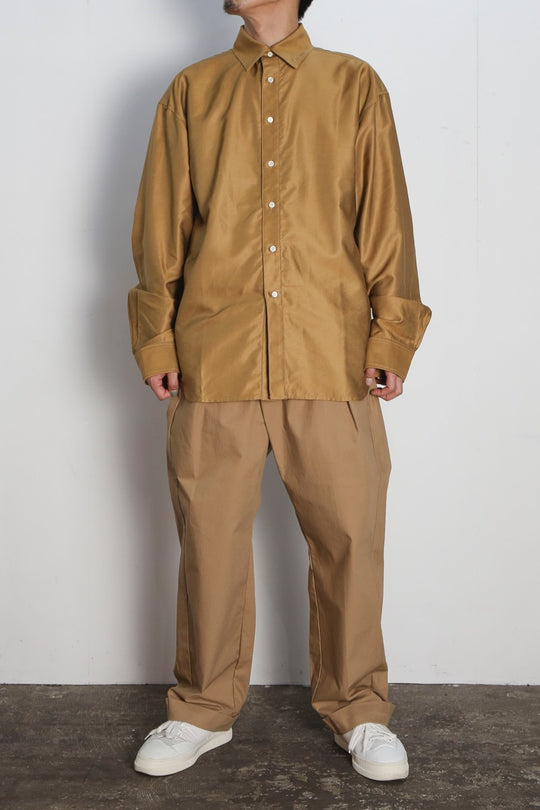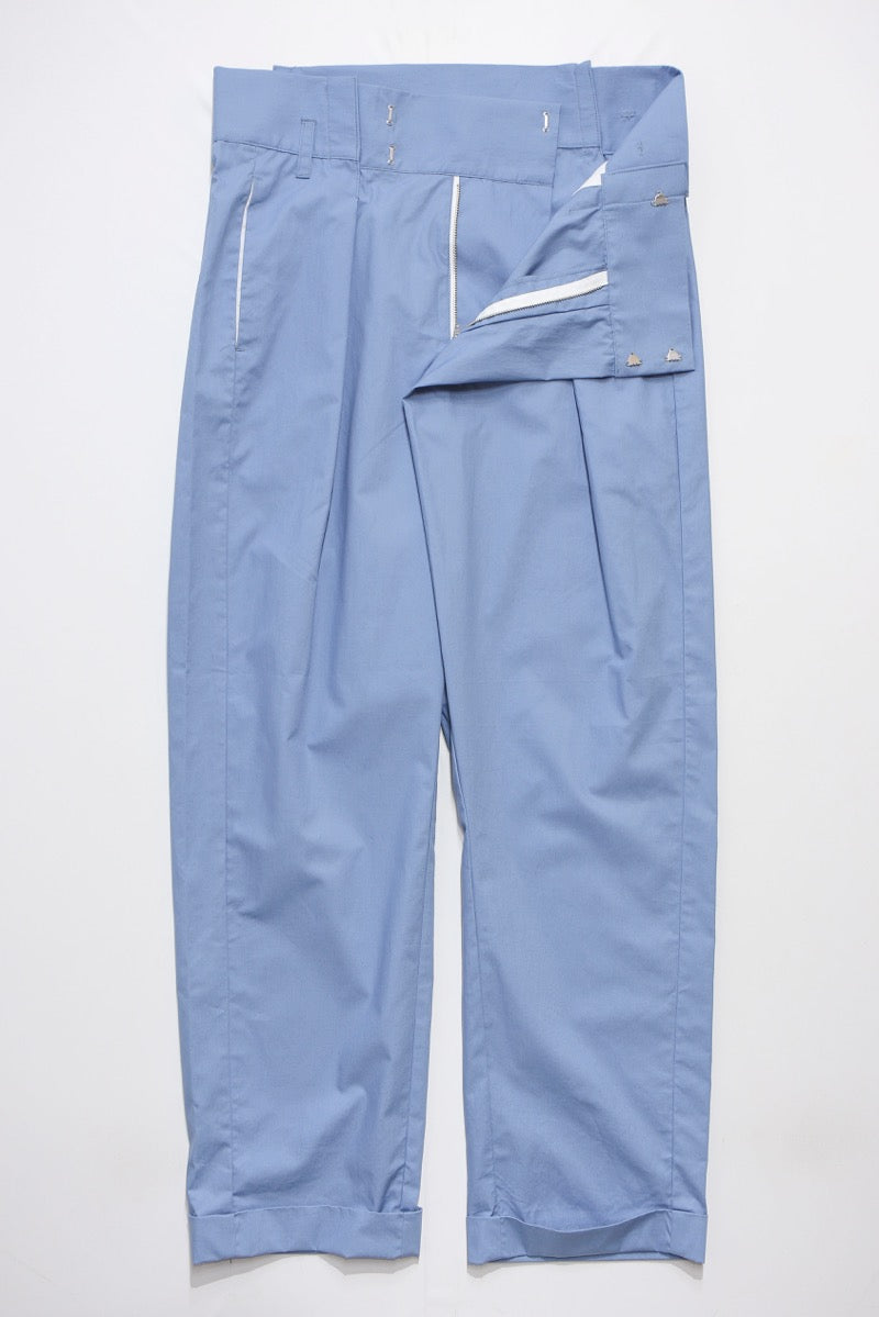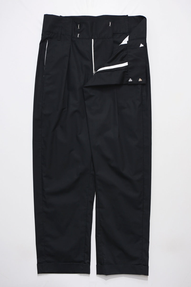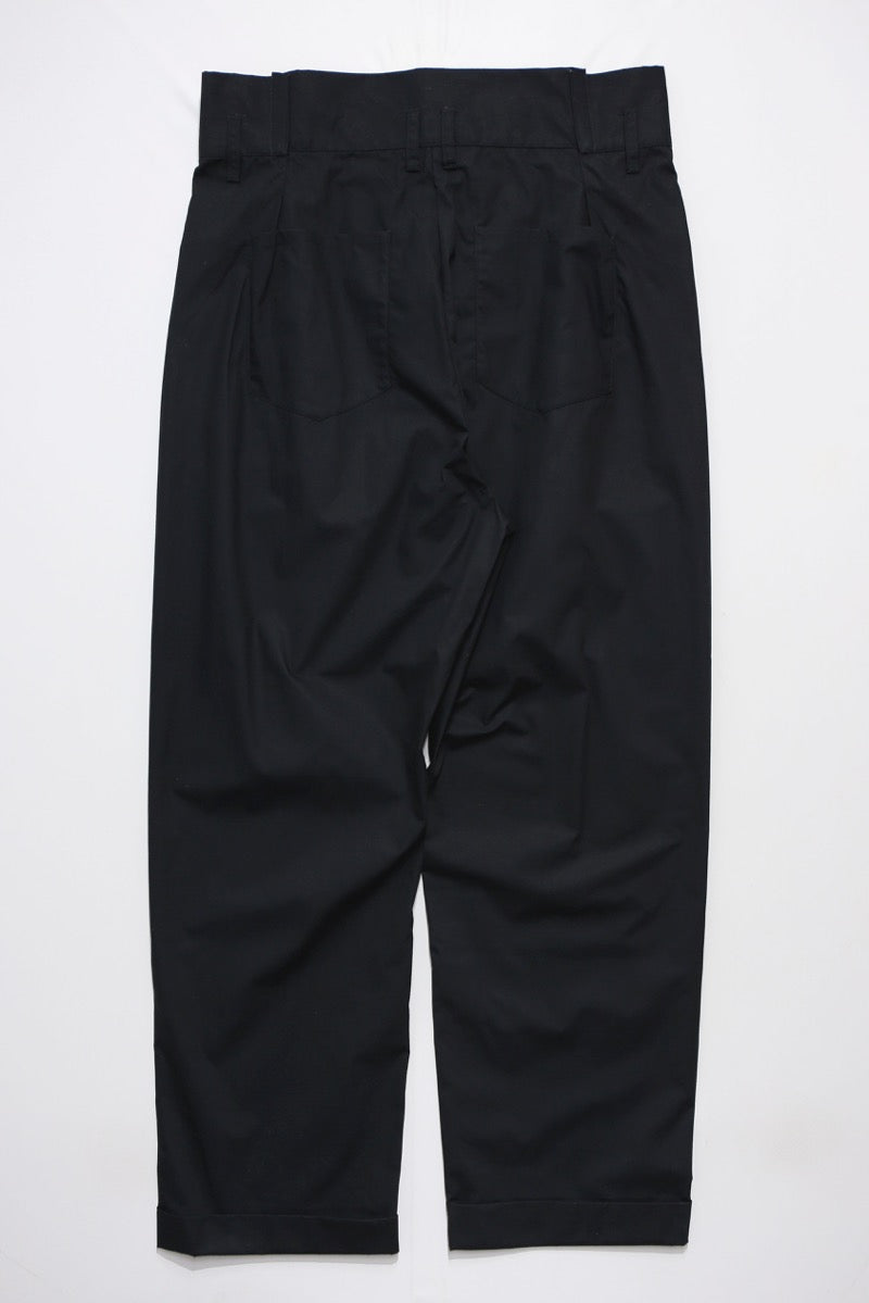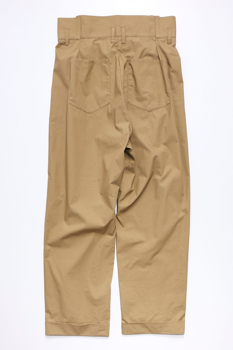ウエストがダブル仕様になったラップパンツ。ワイドなシルエットで、裾はダブル仕様。