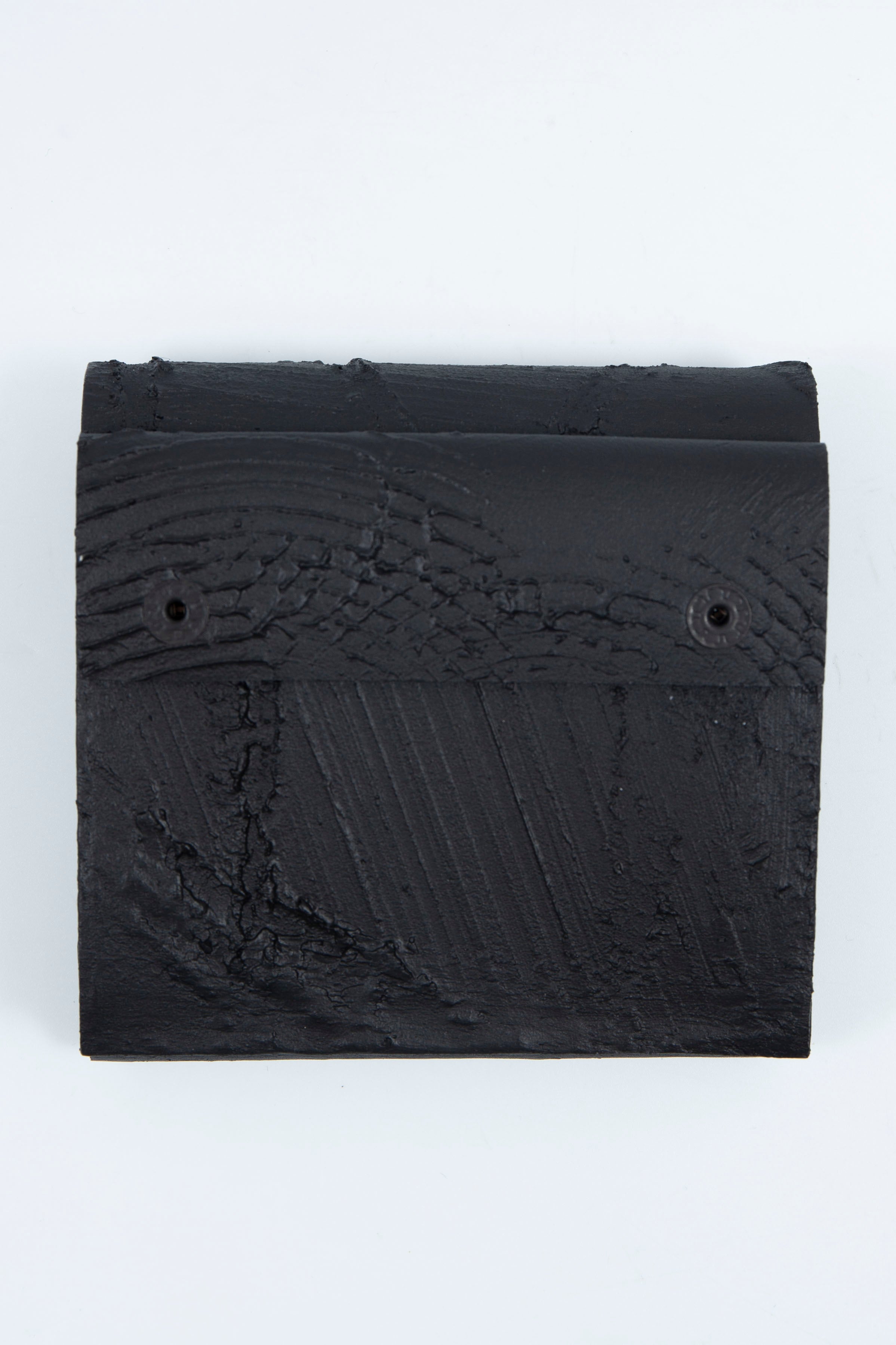 スナップボタン式の三つ折り財布。中は札入れ、カード入れ4室(12枚分)のシンプルなデザイン。