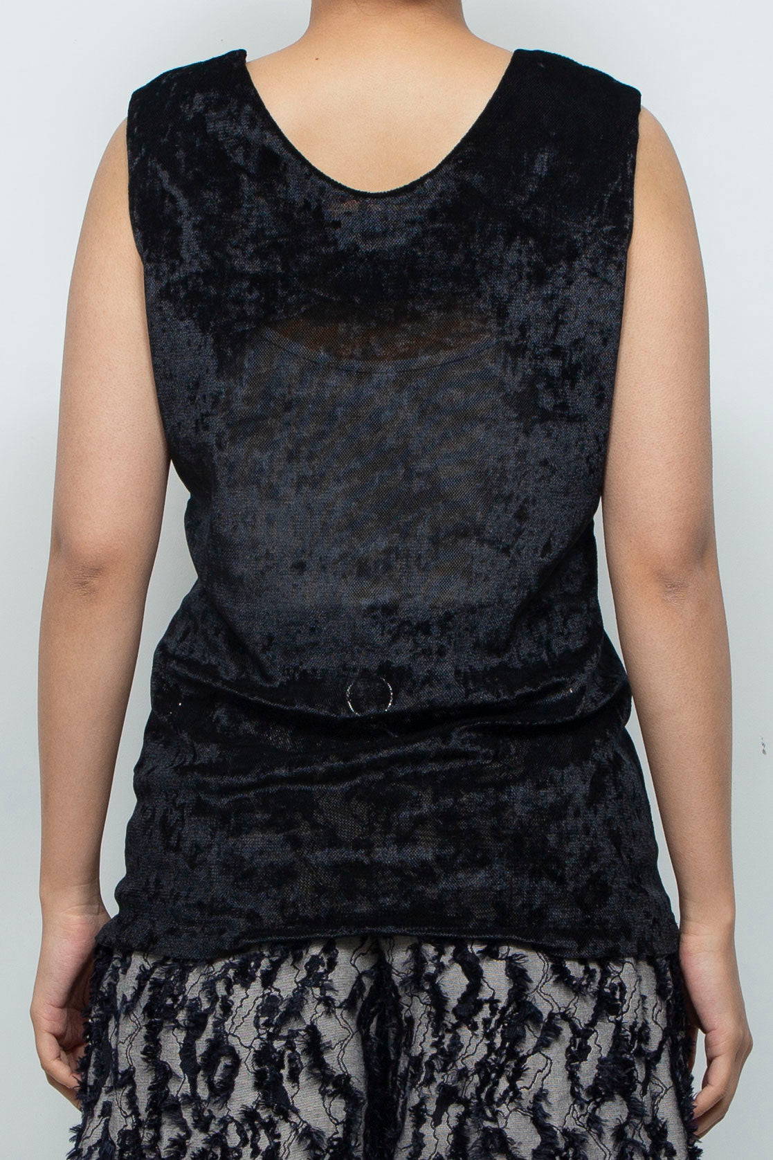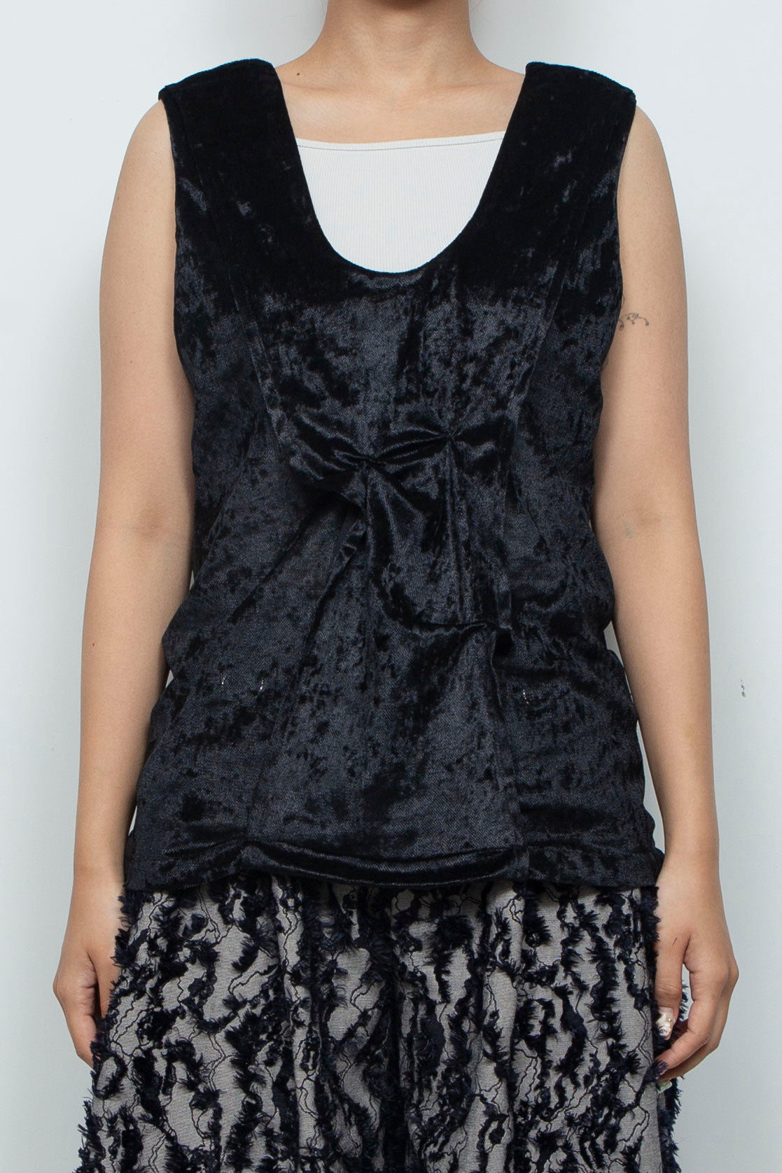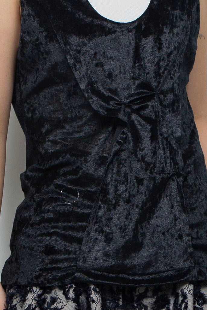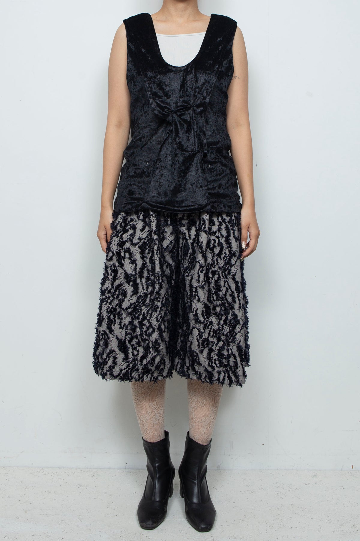 繊細な透け感と深みのある立体感を持つシアーベロアが、肌と布、そして布と布のあいだに曖昧な境界を生み出します。