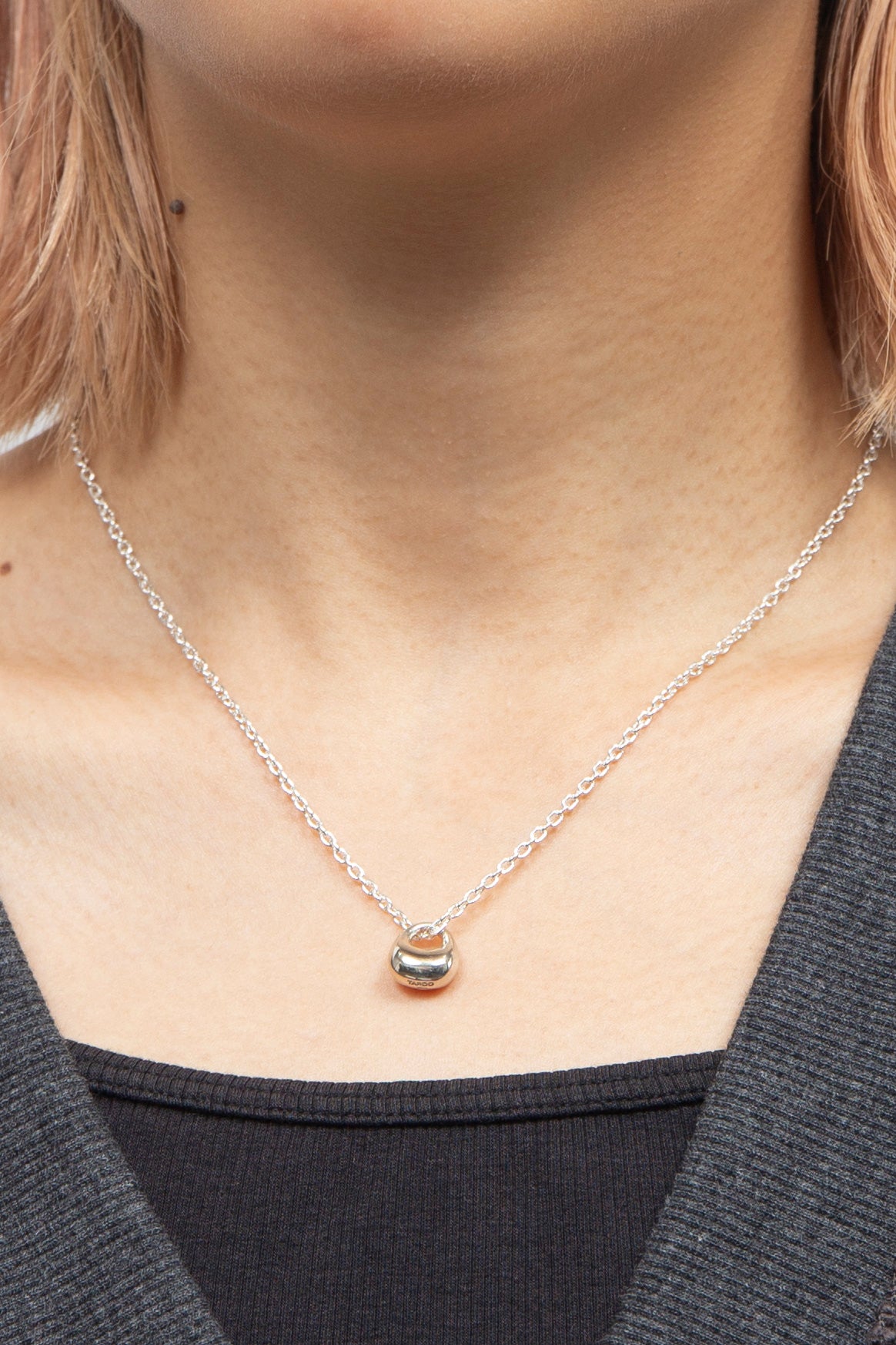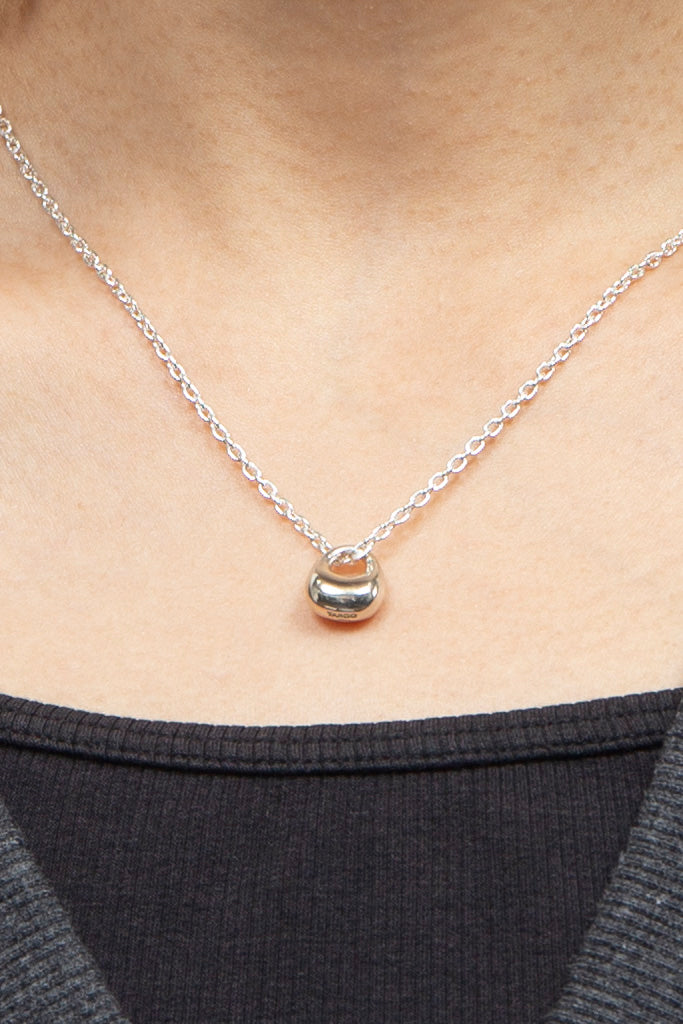 繊細なシルバーチェーンに、滑らかなシルエットを描く小さなチャームを添えたネックレス。