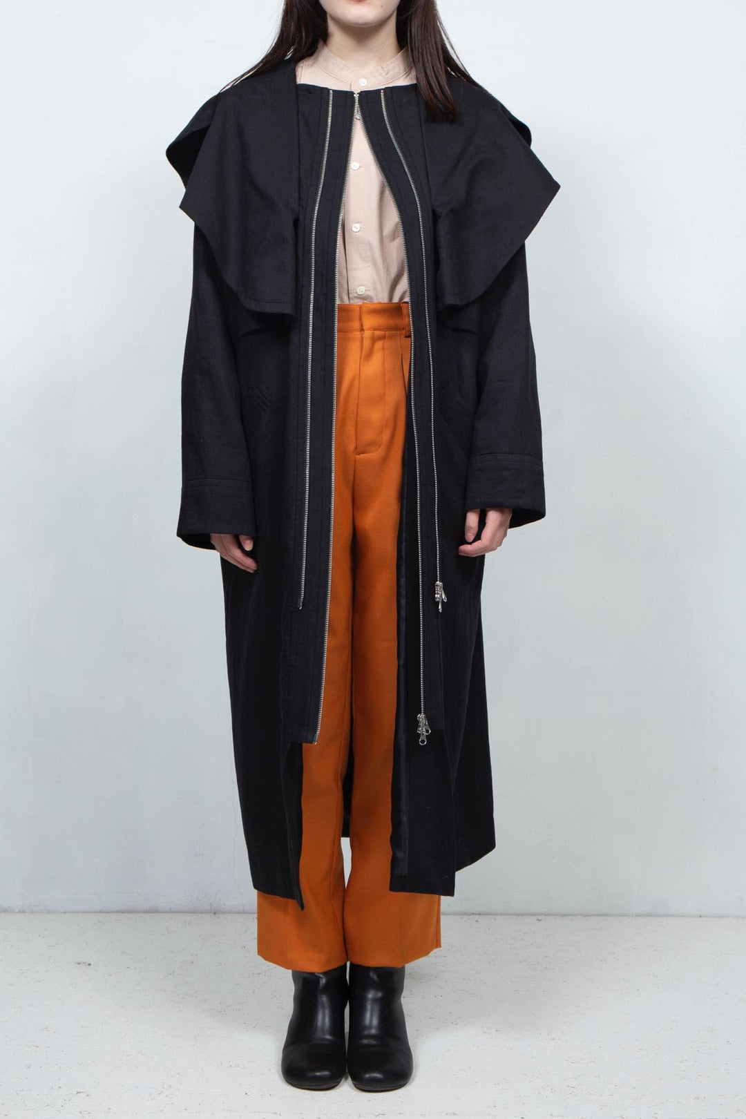 GHOST PARTY / linen & cotton layered coat Black