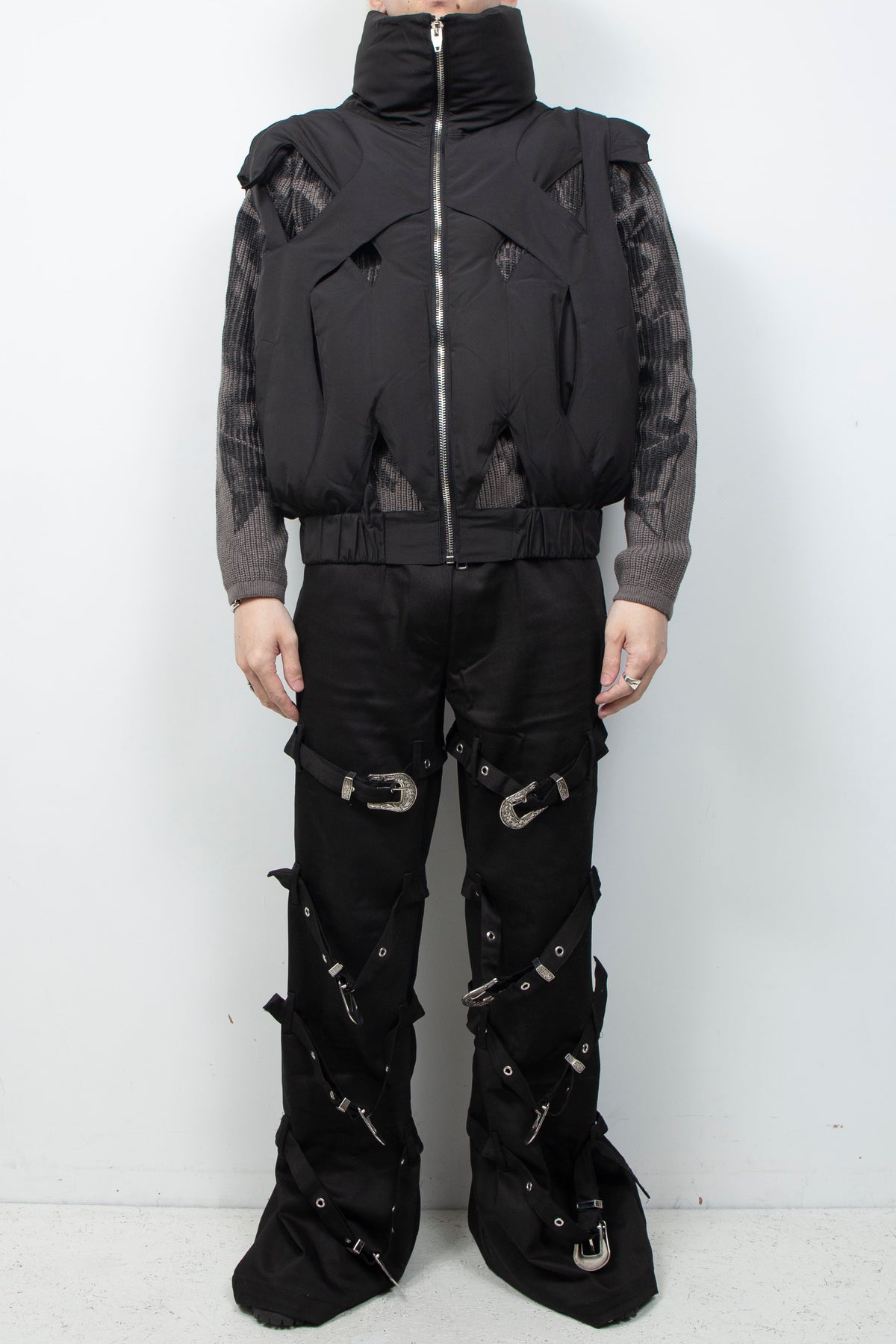 複雑に入り組んだデザインの中綿ベスト。