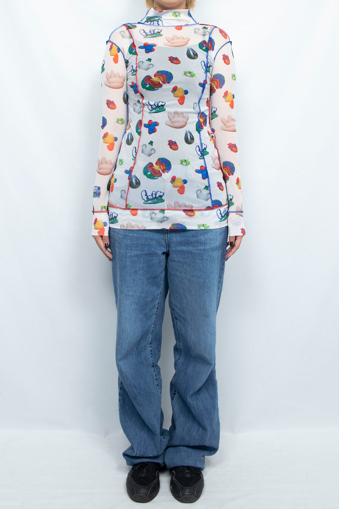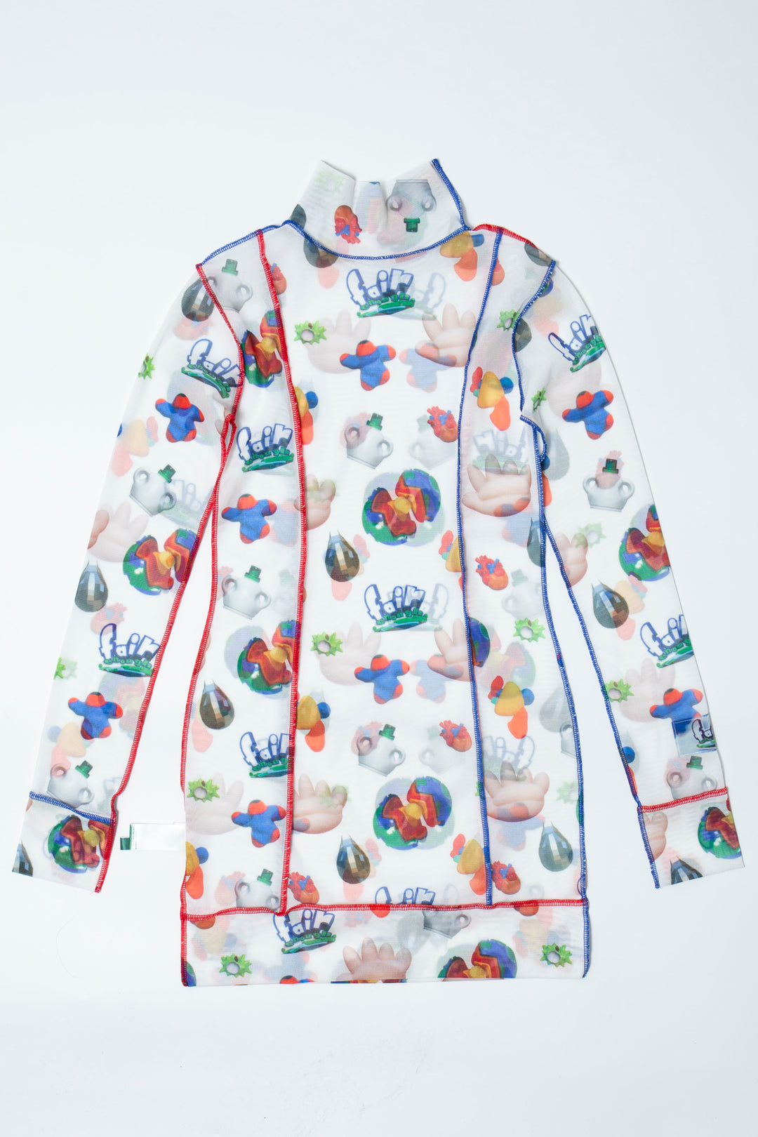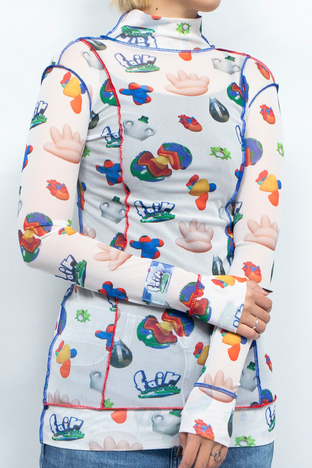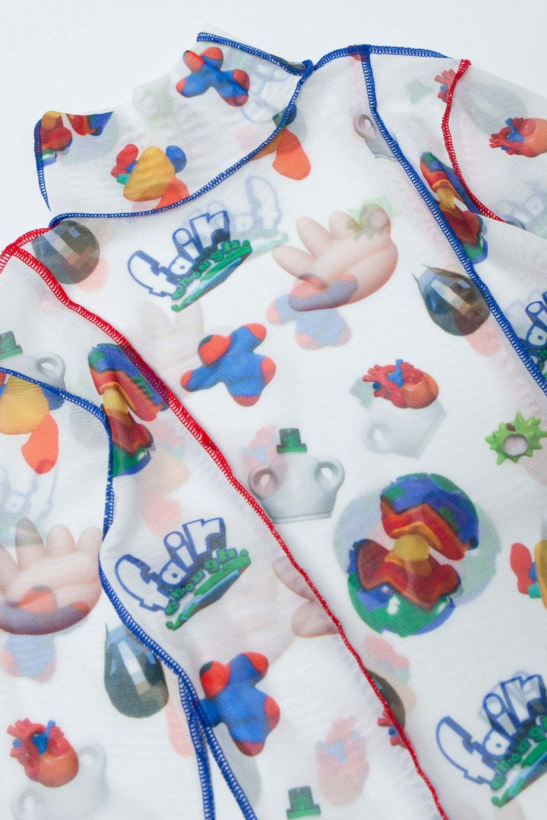 ストレッチ性のあるポリエステルメッシュのトップス。