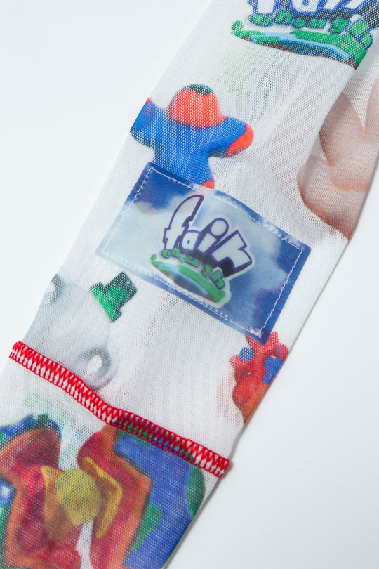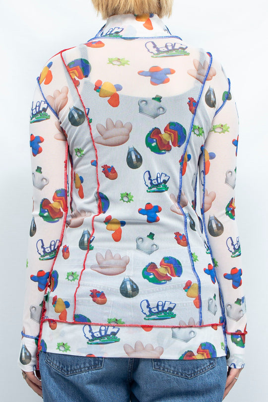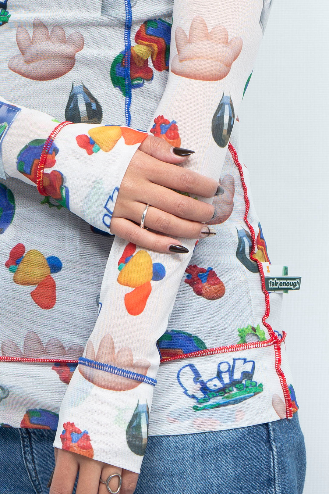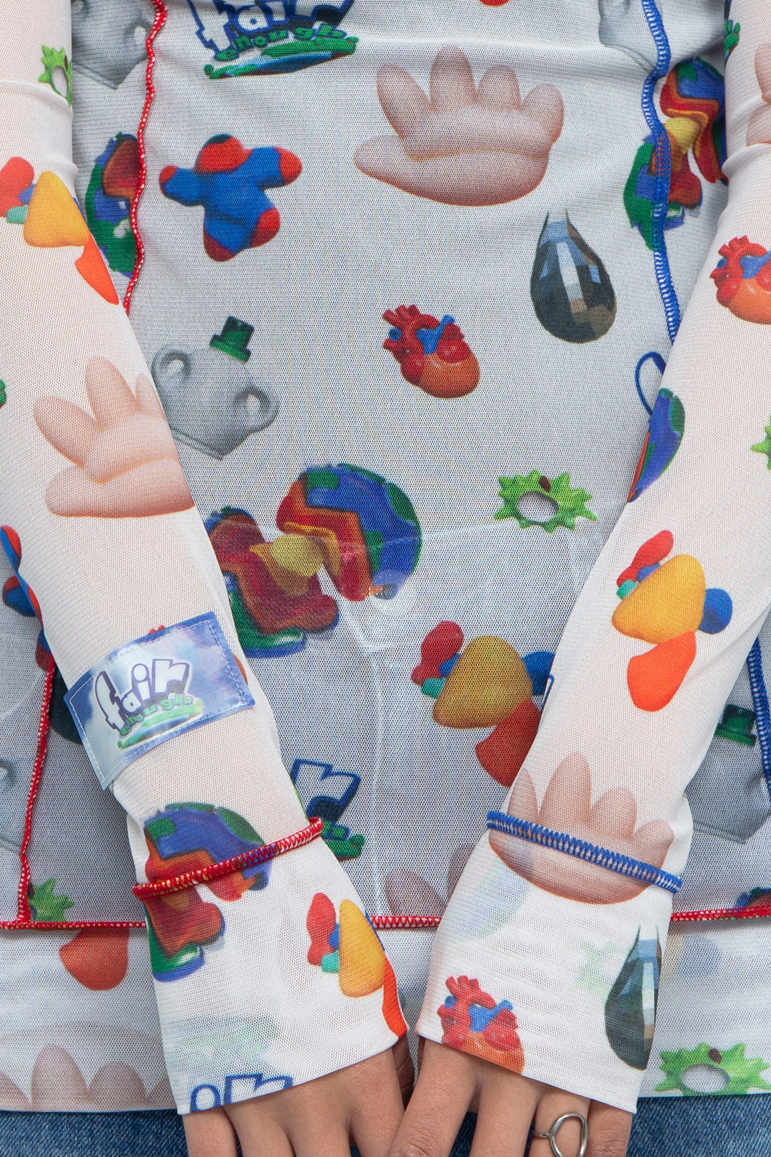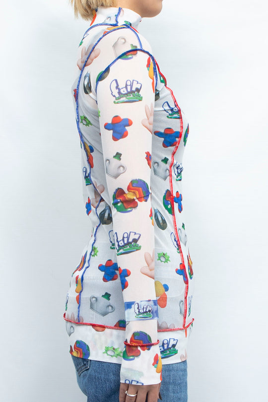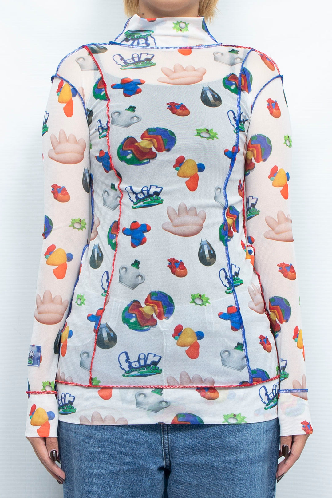 ストレッチ性のあるポリエステルメッシュのトップス。