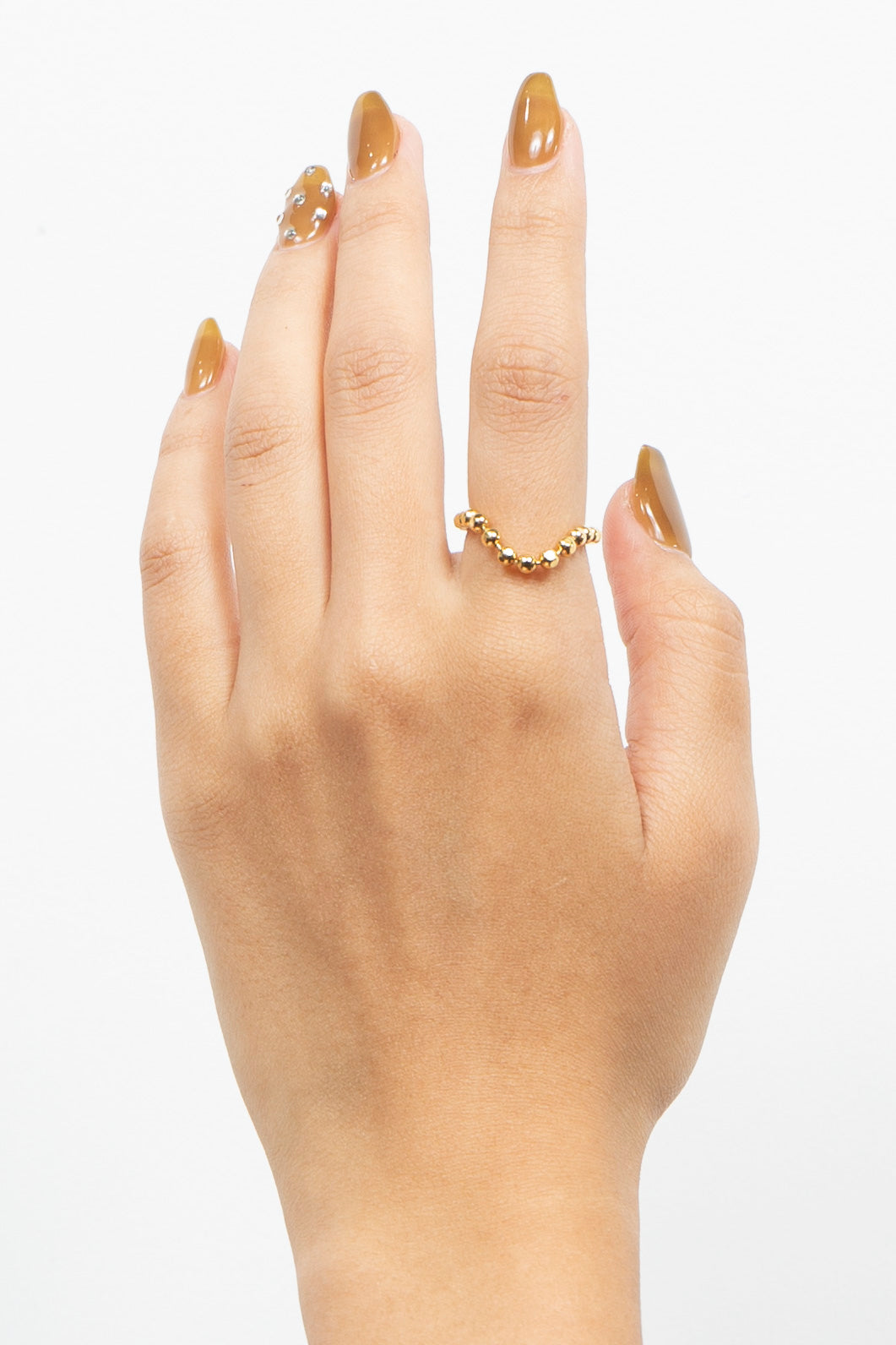 チェーンの動きに呼応して金の滴が揺れ、光と重さの対比が生まれます。