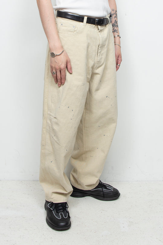 3D-Pattern Frosted Painted Barrel Chino Pants ECRU