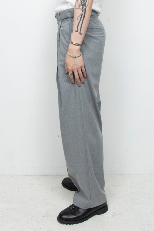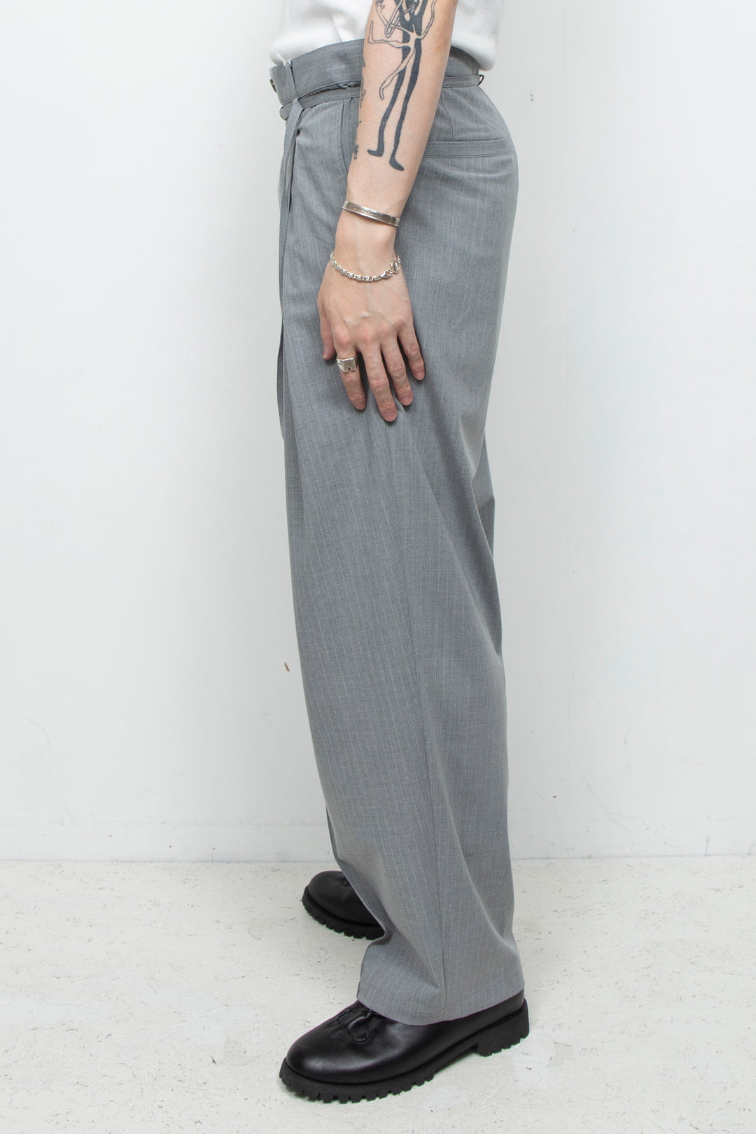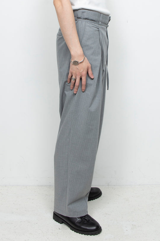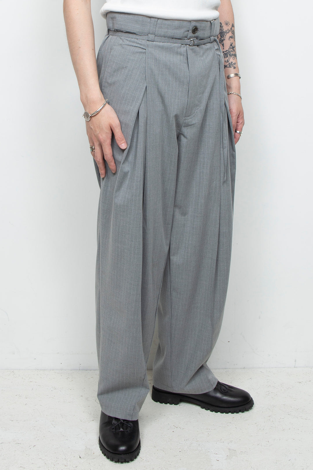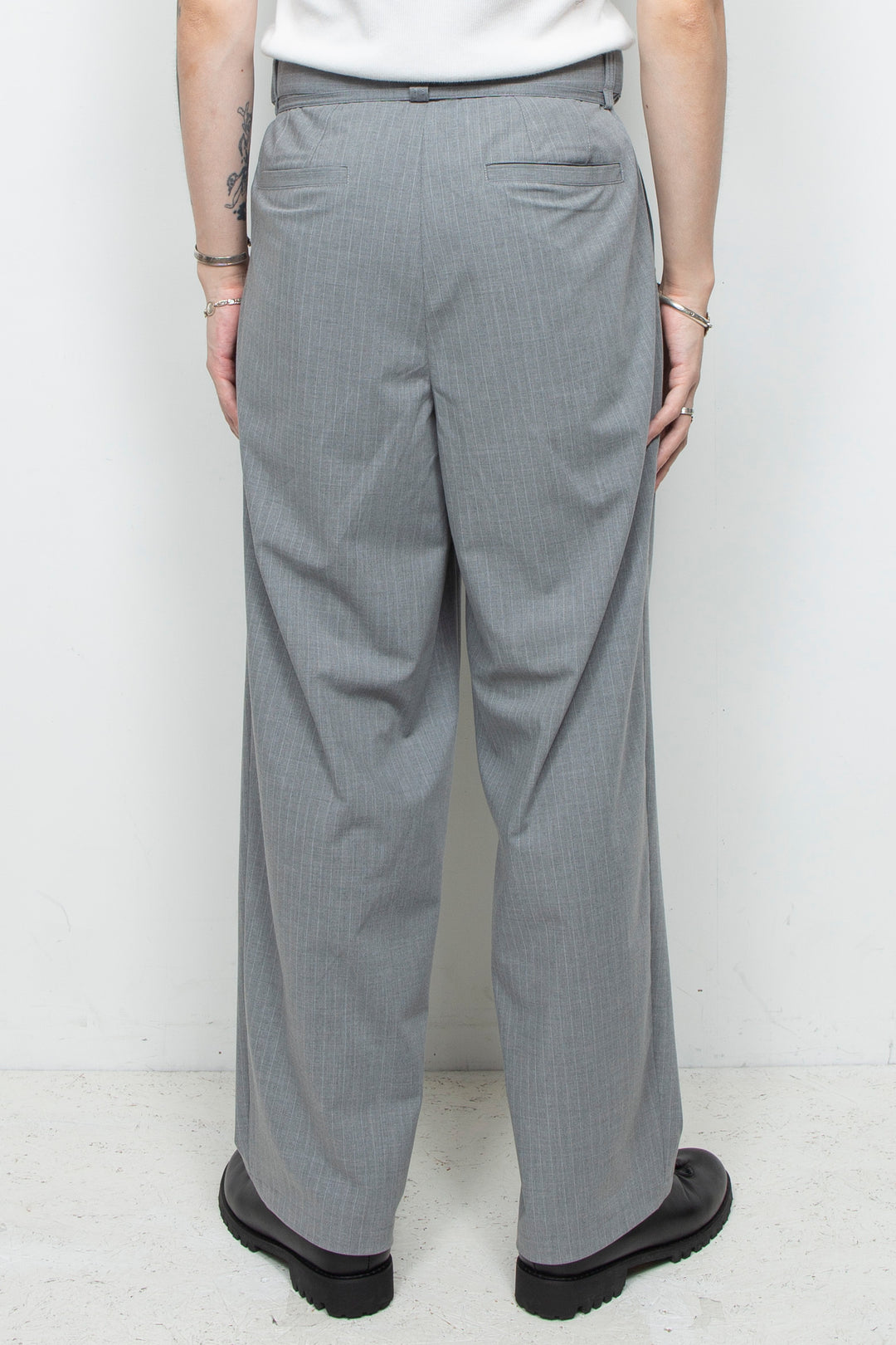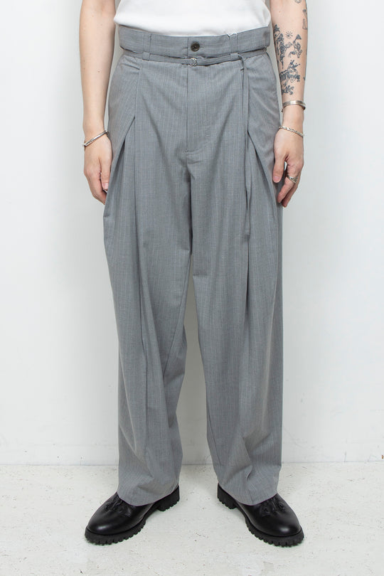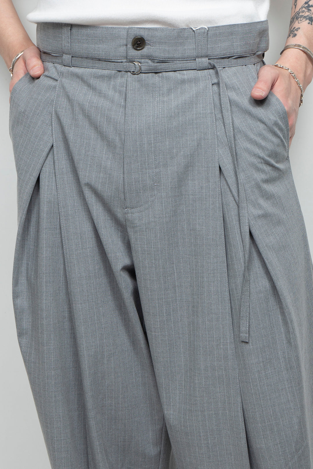 Handsome Stripe Layered Pin-tuck Pants GREY