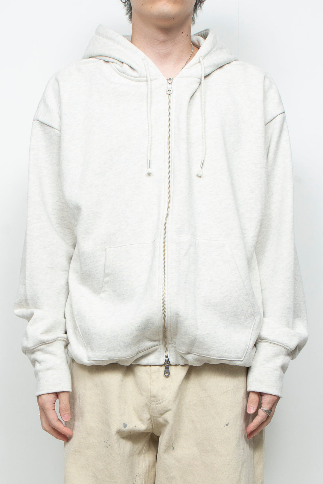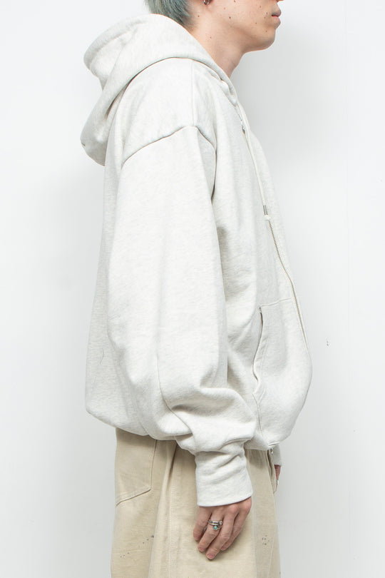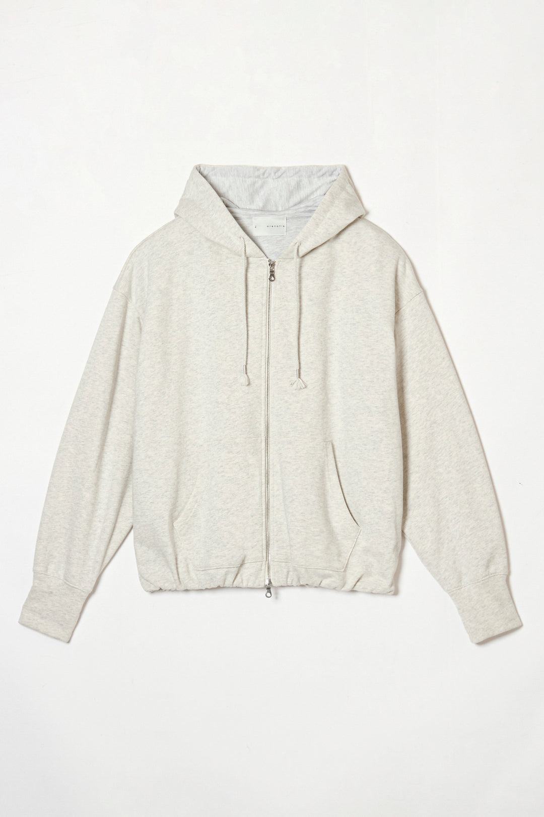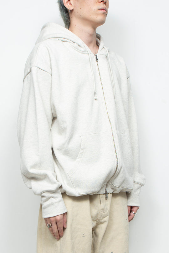 Heavyweight Gathered Hem Zip-Up Hoodie GREY