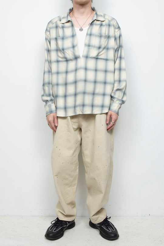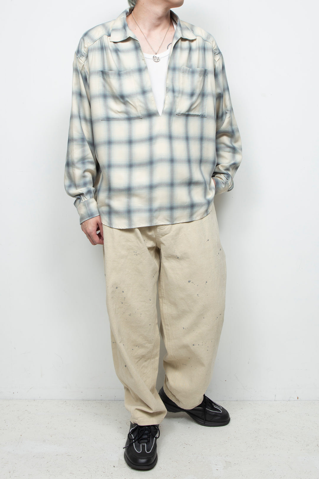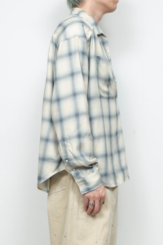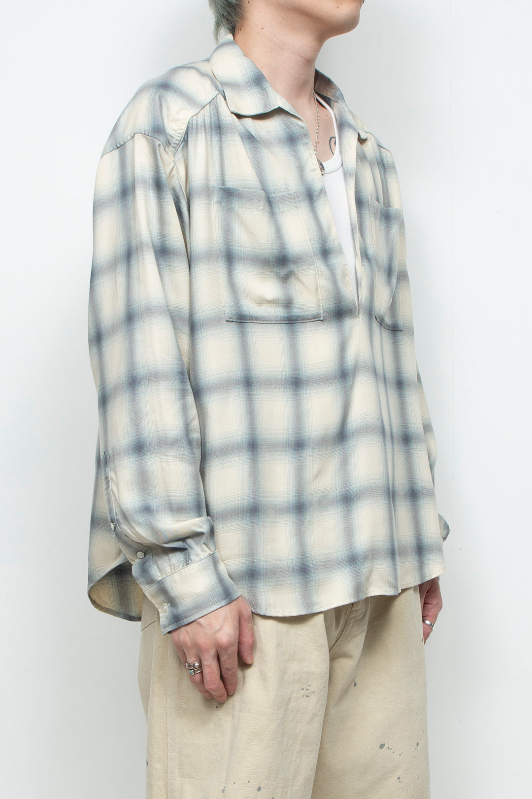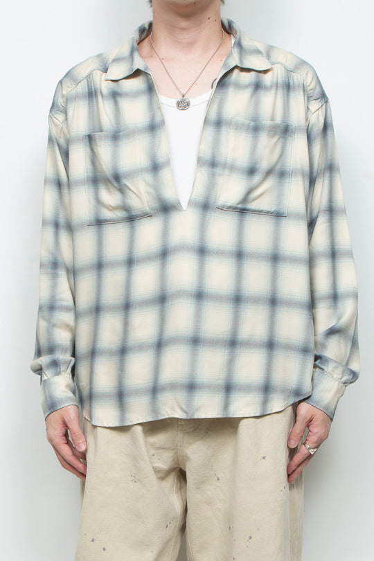 レーヨンオンブレチェックギャザースキッパーシャツ