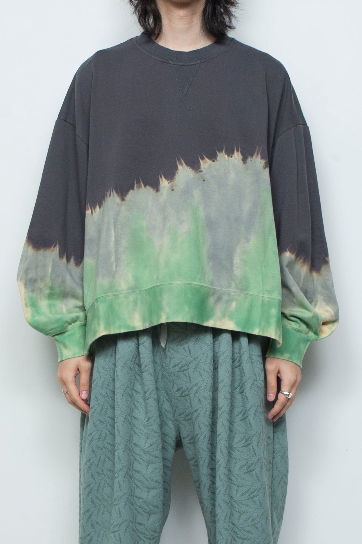 日本の伝統技術“引き染め”を応用したハンドダイドロングスリーブプルオーバー。