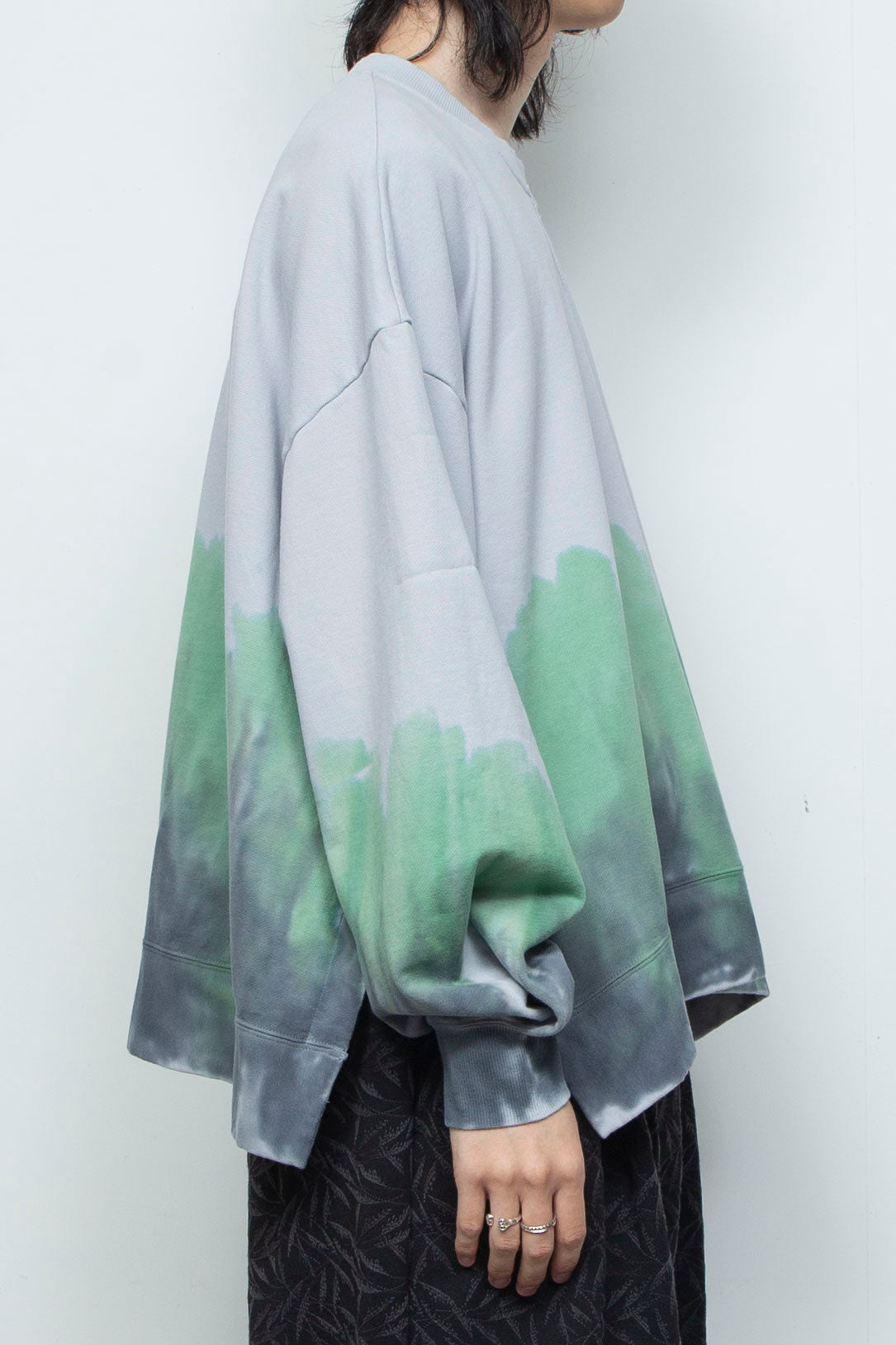 日本の伝統技術“引き染め”を応用したハンドダイドロングスリーブプルオーバー。