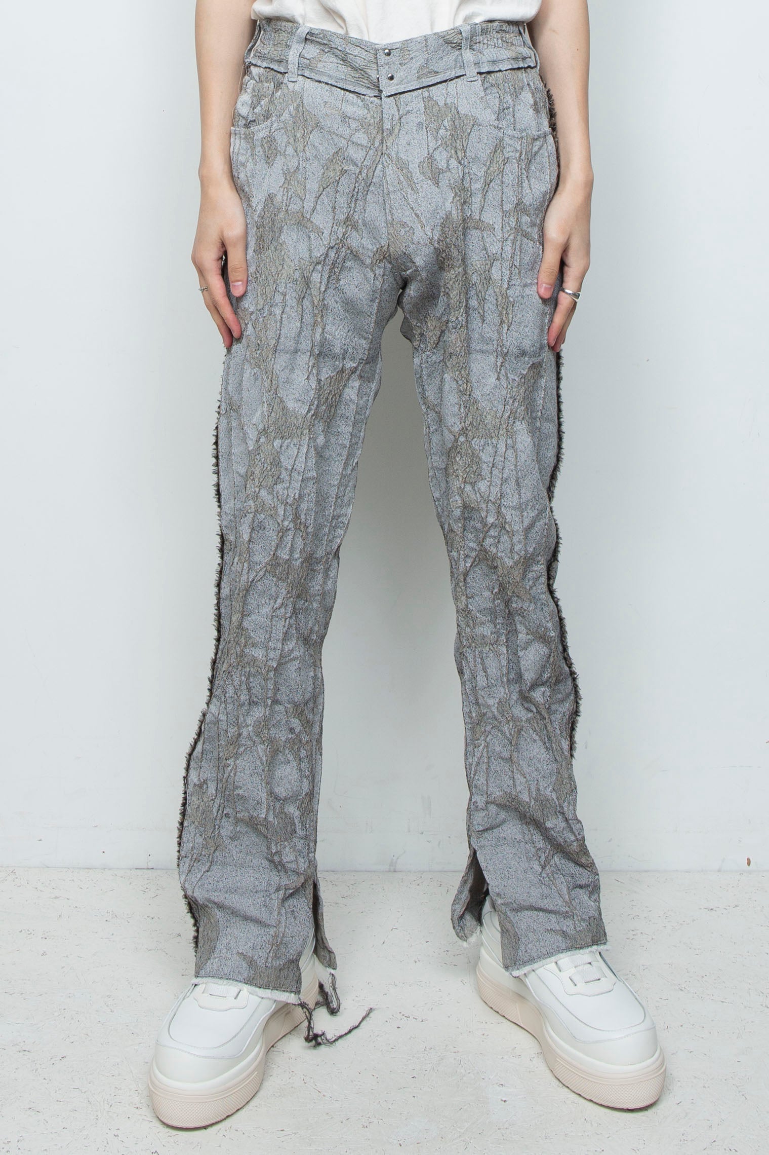 ※ほつれはデザインの一部です。着用を重ねるごとに変化いたします。ほつれ止め防止の縫製をほどこしてますので品質に影響を与える ほつれは起きないよう設計されていますが、故意に強くひっぱったりすると予期せぬ破損の原因となりますのでお控えください。