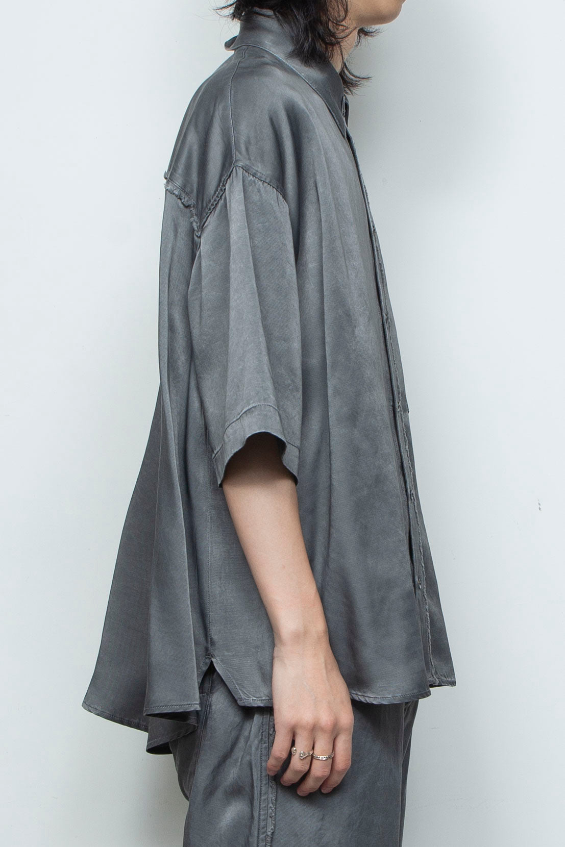 キュプラツイル生地に原反ピグメントダイを施した、新作ショートスリーブコンパクトシャツ。