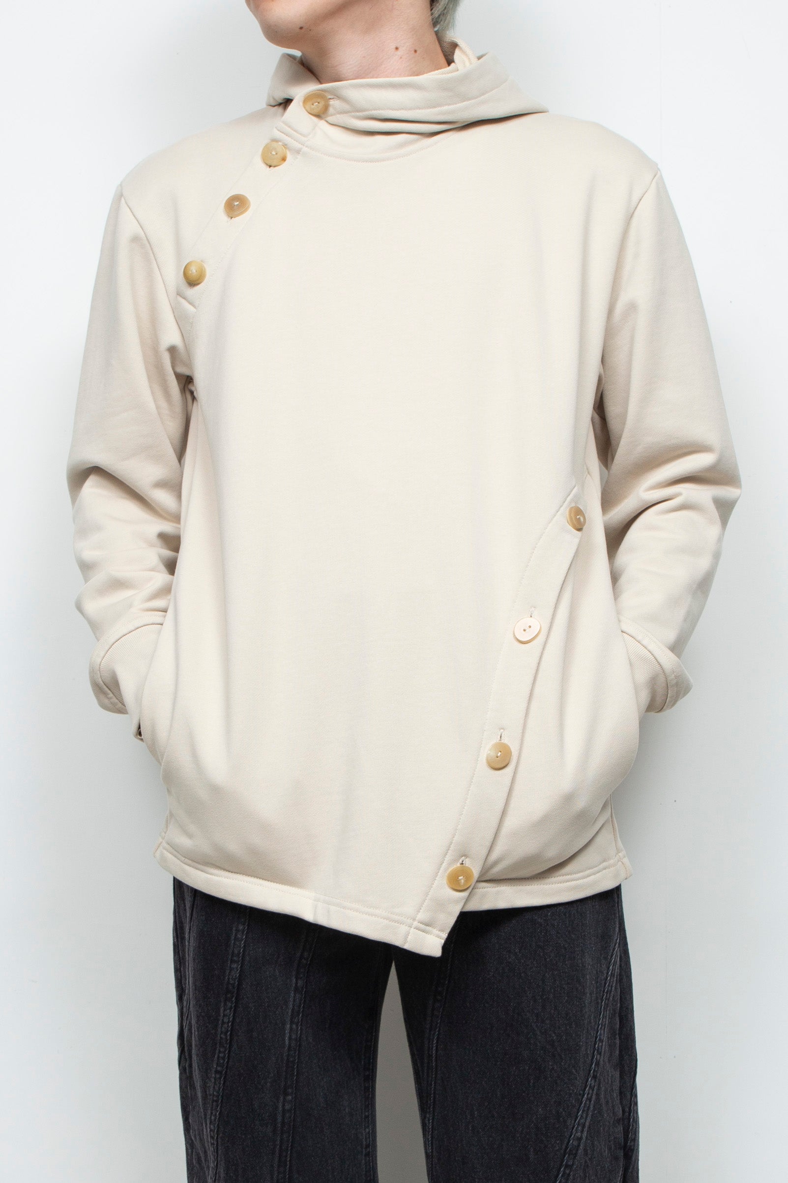 立体的なタックがアクセントとなり、デザイン性も兼ね備え、さまざまなスタイリングに馴染む一着です。