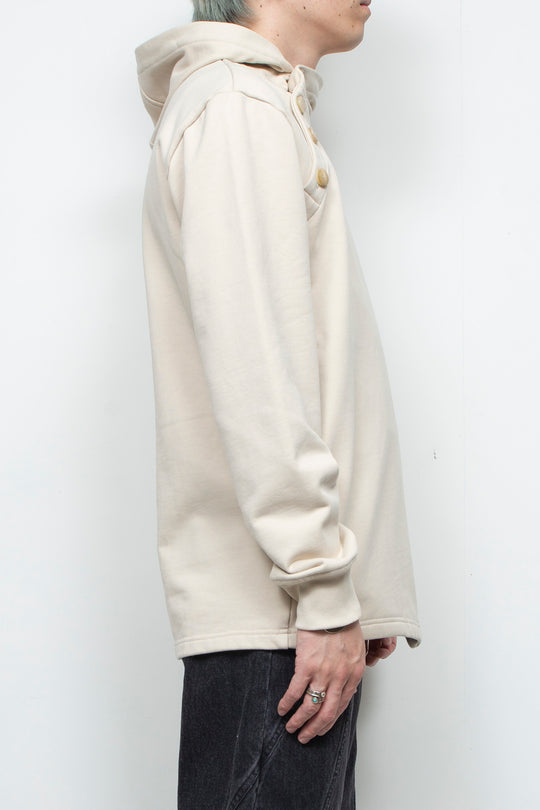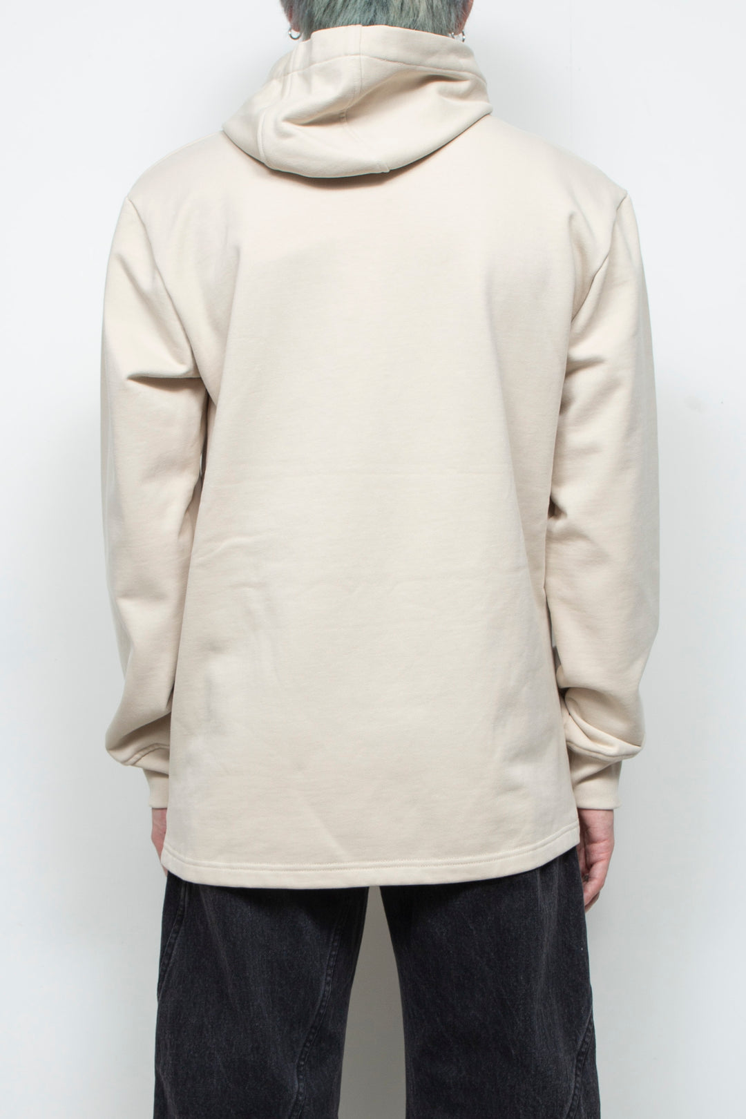 コットン100%のヘビーウェイトなスウェット生地を使用したフーディプルオーバー。