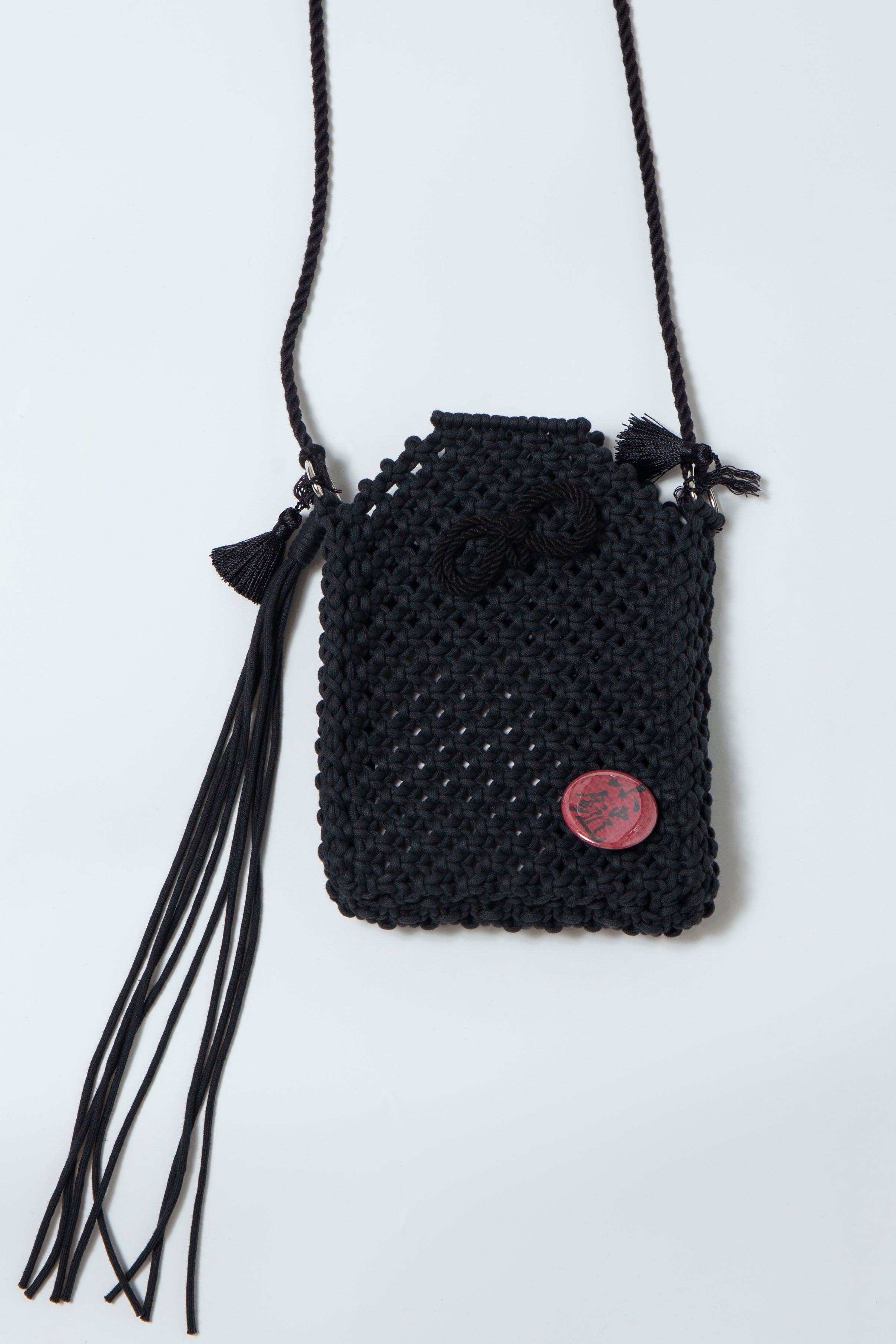 プリミティブな質感のリネンのバッグ。ショルダーストラップは取り外し可能で、付属する丸カンでパンツへの接続や、koyariのBand collar jacketの腰元にも付けられる仕様。