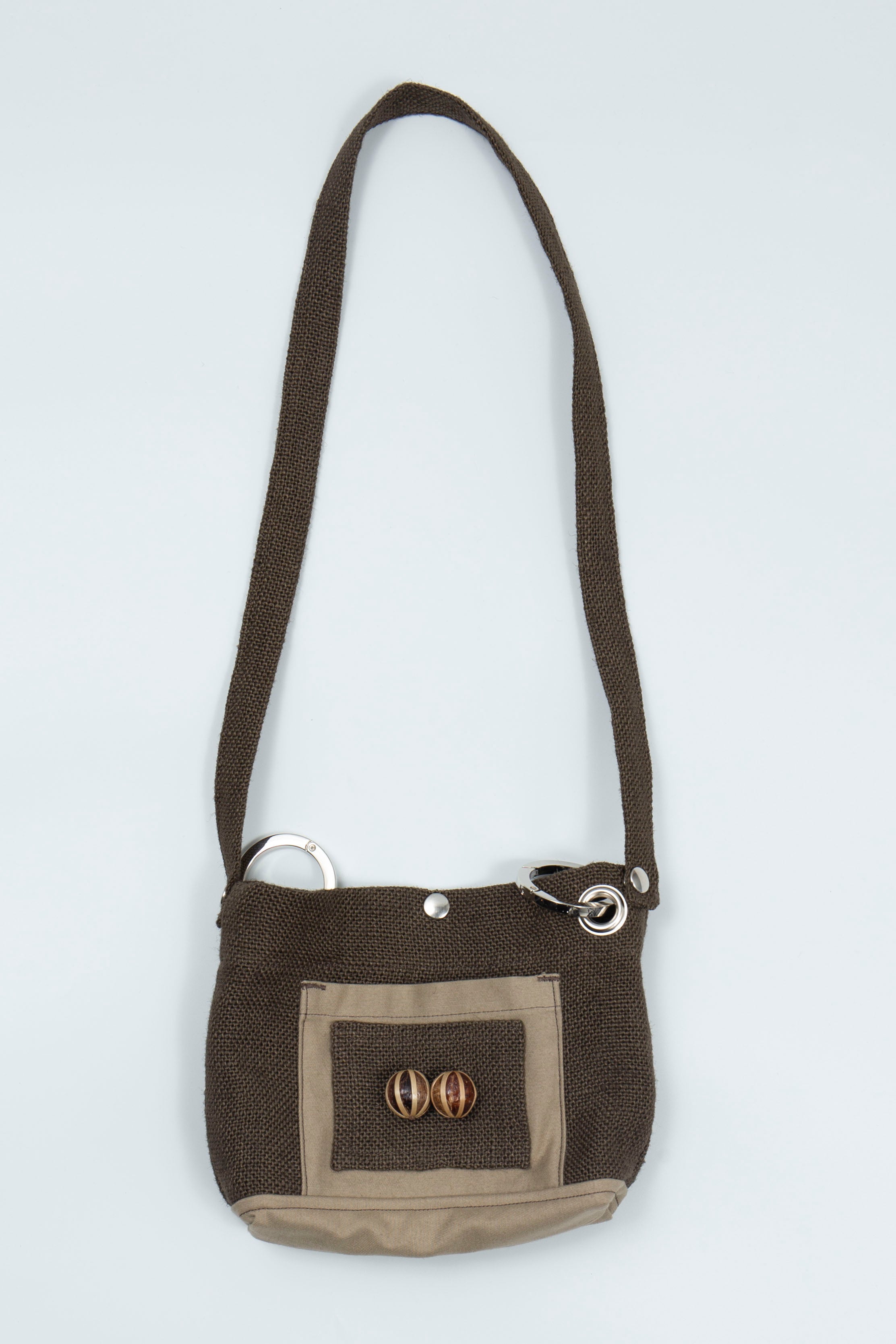 複数のストラップが取り付けられている3WAYショルダーバッグ。キャラクターの総柄。 A 3-way shoulder bag with multiple straps. All-over character pattern.