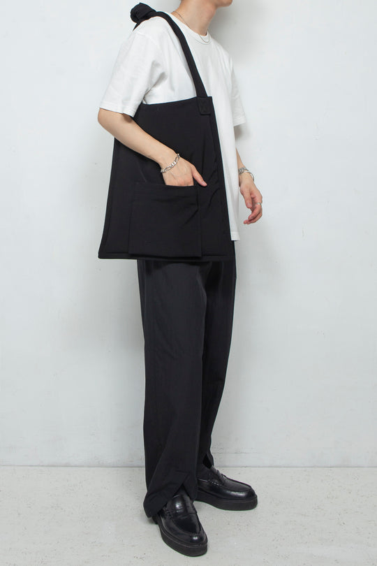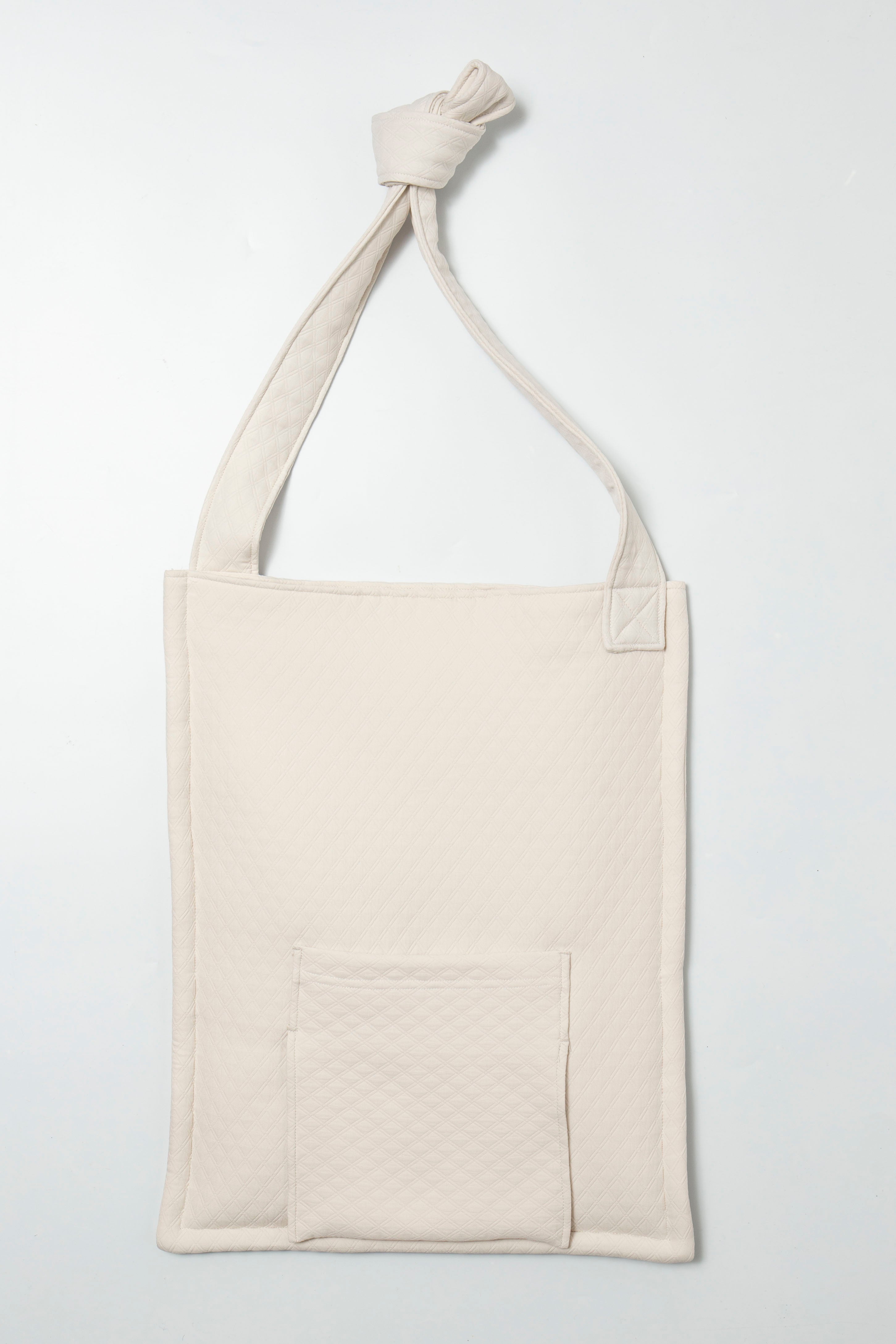 持ち手が長くなっており、斜め掛けはもちろん、結んでショルダーバッグとしてもお使いいただけます。