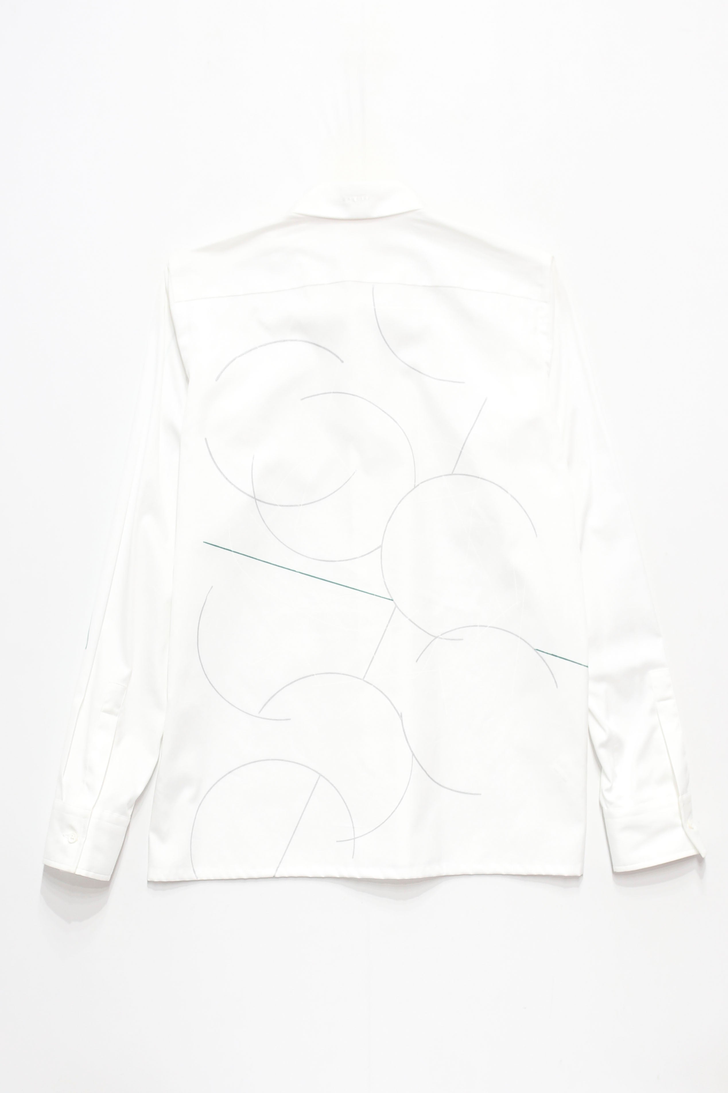 Shirts by Standは、東京を拠点にグラフィックデザインをはじめとした様々な制作を行うスタジオ“Stand”のオリジナルシャツブランドです。 白シャツというスタンダードなアイテムだからこそ、人とは違う一枚を。 Standではアトリエで一枚ずつ手作業でプリントを施しています。 流れ作業でつくるのではなく、キャンバスに向き合うように。 シャツ一枚一枚を作品であると考えます。 日々身に着けるものにアートを。共にある暮らしを。 プリントが際立つように、形はミニマルに。 裾は直線的で左脇に縫い目がないのが特徴です。 ズボンの上に出してさらっと一枚で着ていただけます。 ちなみにプリント方法はシルクスクリーンです。 版を重ねたり刷る場所を変えて、全部同じものがない1点ものとなり、 それぞれタグにeditionがついています。 着れるアート作品と考えております。