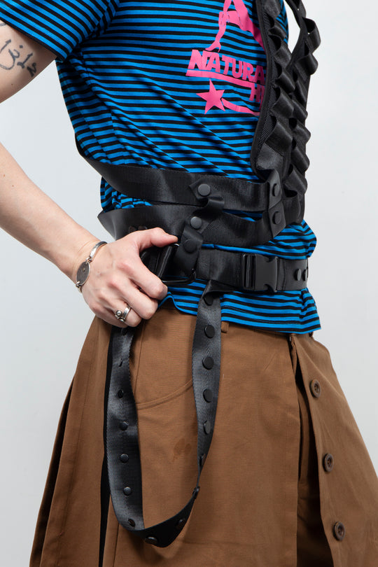 バックパッカーカルチャーから生まれたナイロンウェビングを解体したショルダーベルト。