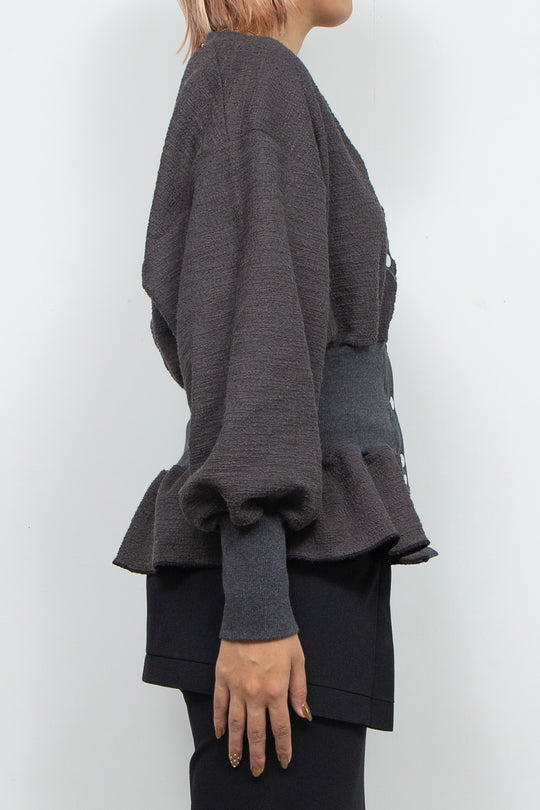 Tweed Jersey Peplum Cardigan Gray