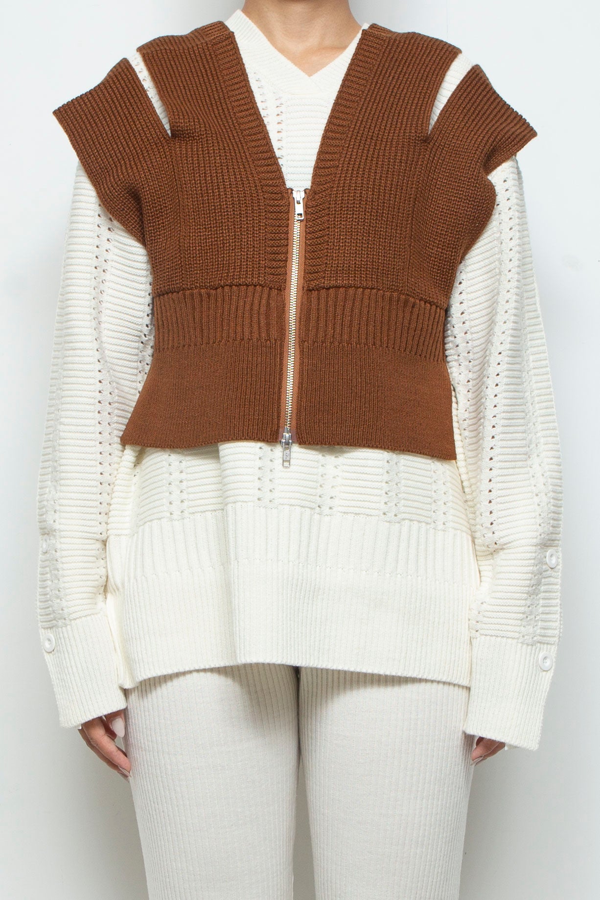 前開きファスナーのニットベスト。