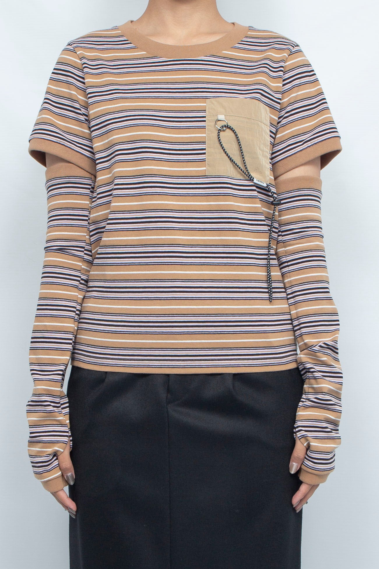Multi Border Pocket Dolman Tops beige