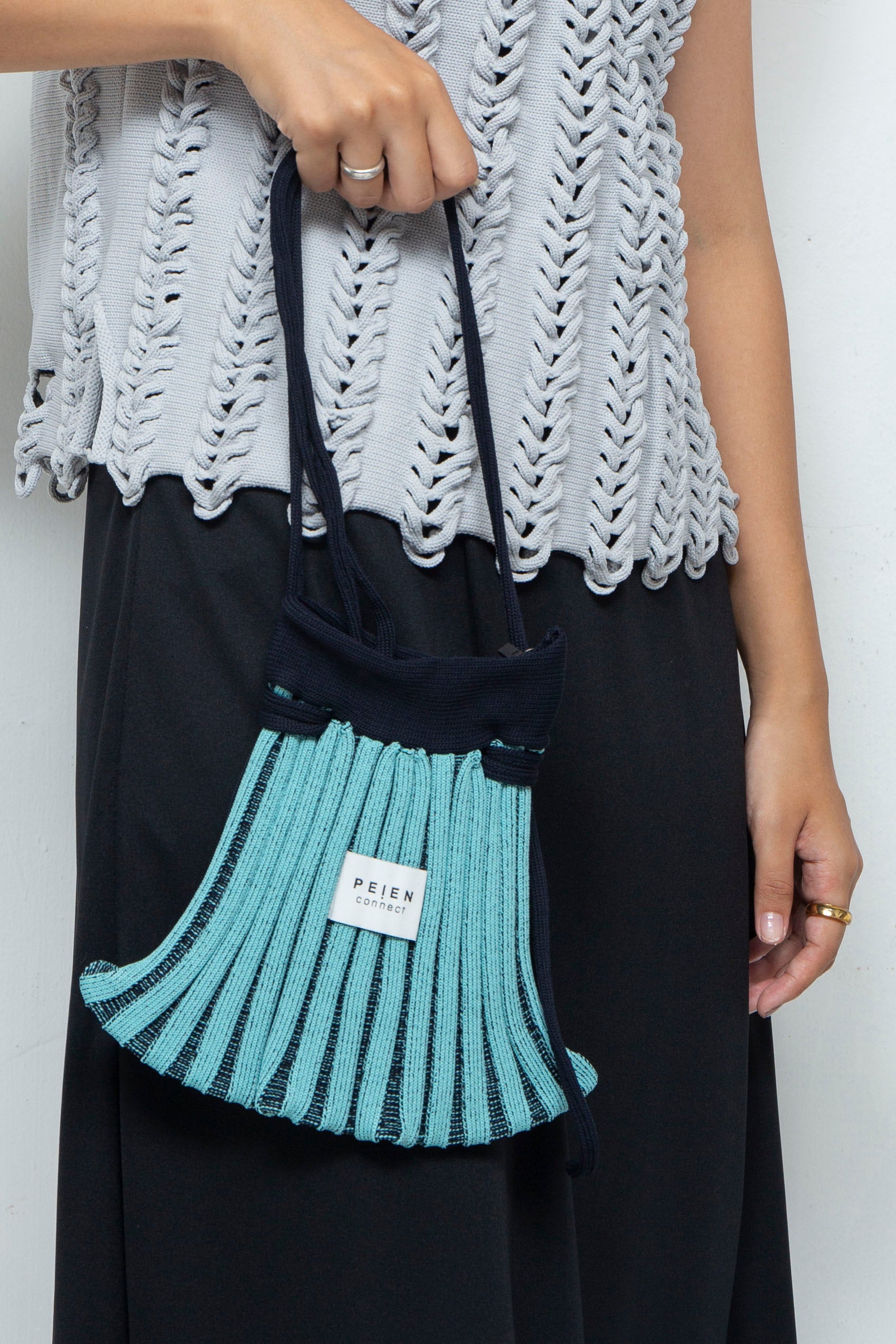 シルバーの裾やギャザーのようなデザインが特徴。