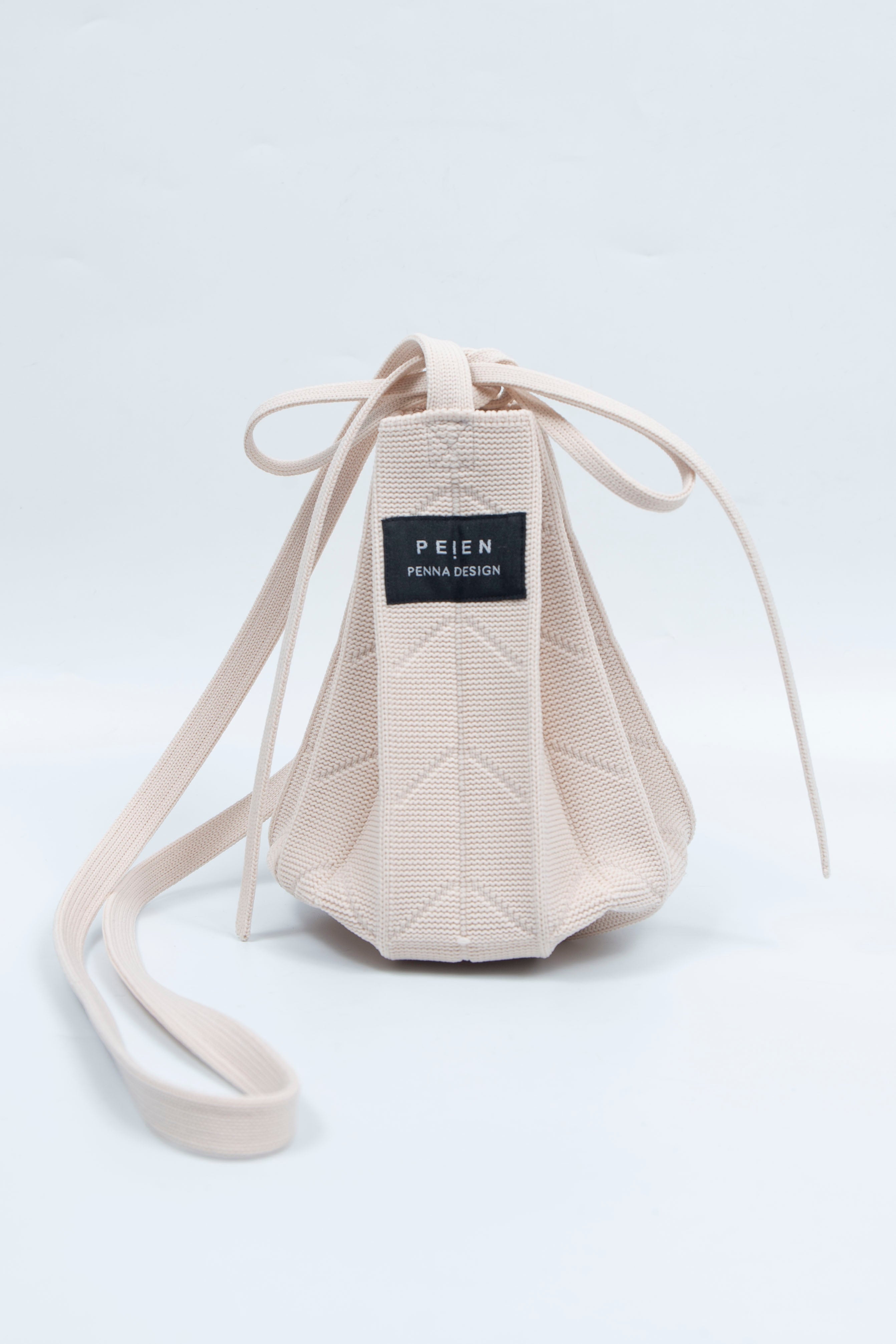 Suggested to be used in place of a pocket, it expands horizontally when you put something in it, creating a cute silhouette.