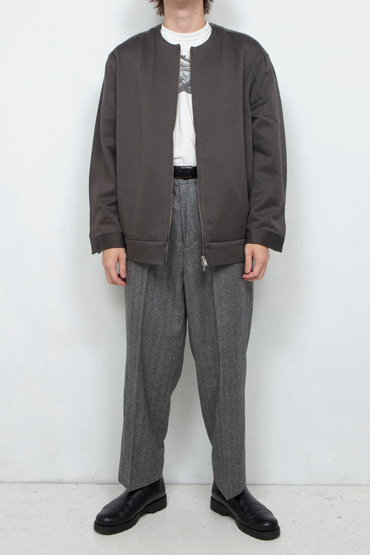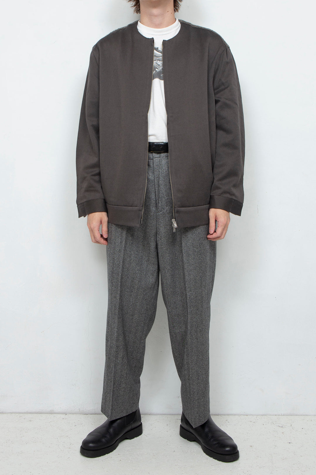 Slack pants with center press. The striped pattern expressed in light and dark shades gives an elegant impression, and the press in the center creates a three-dimensional and beautiful silhouette.
