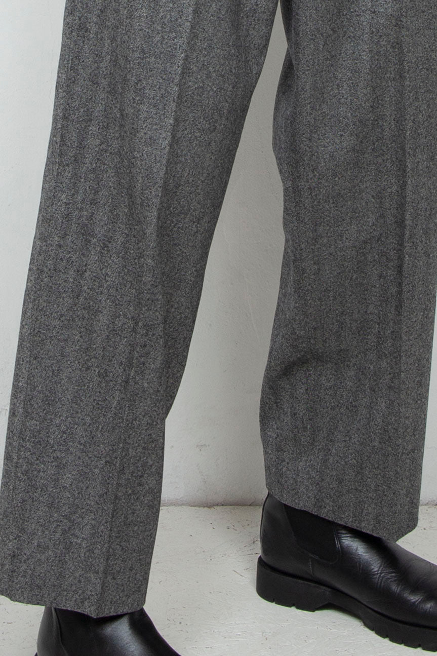センタープレス入りのスラックスパンツ。薄い濃淡で表現したストライプ柄が上品な印象で、センターのプレスで立体感で綺麗なシルエットに仕上がります。