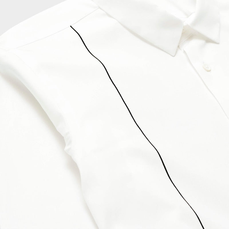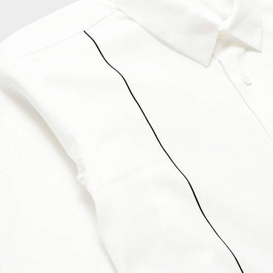 Shirts by Standは、東京を拠点にグラフィックデザインをはじめとした様々な制作を行うスタジオ“Stand”のオリジナルシャツブランドです。 白シャツというスタンダードなアイテムだからこそ、人とは違う一枚を。 Standではアトリエで一枚ずつ手作業でプリントを施しています。 流れ作業でつくるのではなく、キャンバスに向き合うように。 シャツ一枚一枚を作品であると考えます。 日々身に着けるものにアートを。共にある暮らしを。 プリントが際立つように、形はミニマルに。 裾は直線的で左脇に縫い目がないのが特徴です。 ズボンの上に出してさらっと一枚で着ていただけます。 ちなみにプリント方法はシルクスクリーンです。 版を重ねたり刷る場所を変えて、全部同じものがない1点ものとなり、 それぞれタグにeditionがついています。 着れるアート作品と考えております。